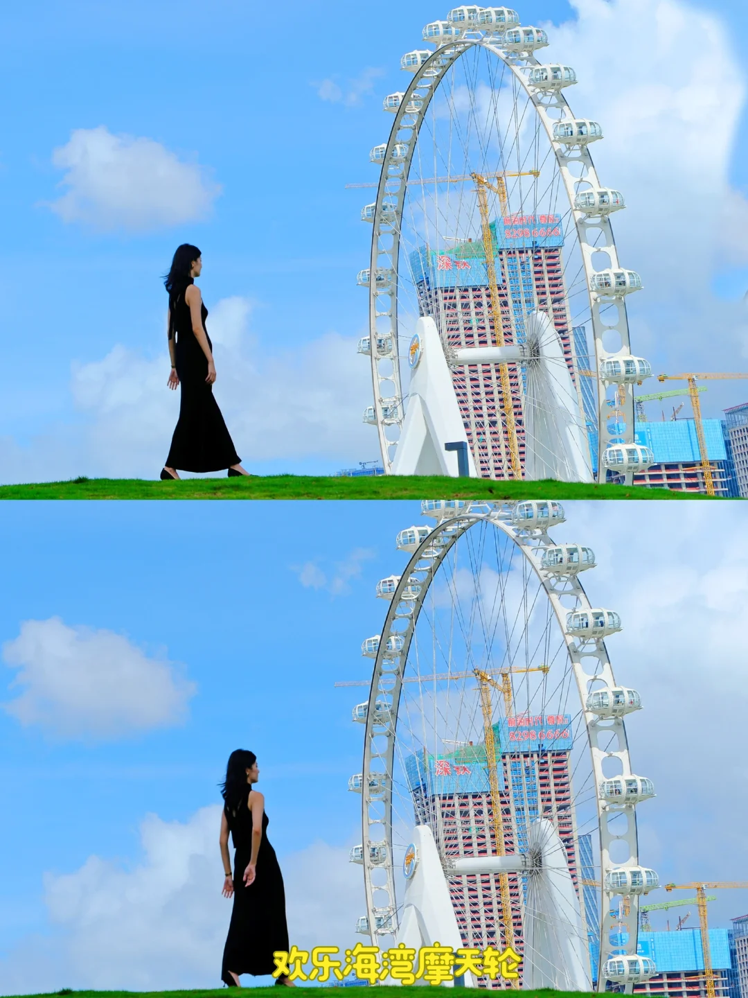 临海地铁站b2出口,庆典广场旁边小草地山坡就可以用摩天轮做背景