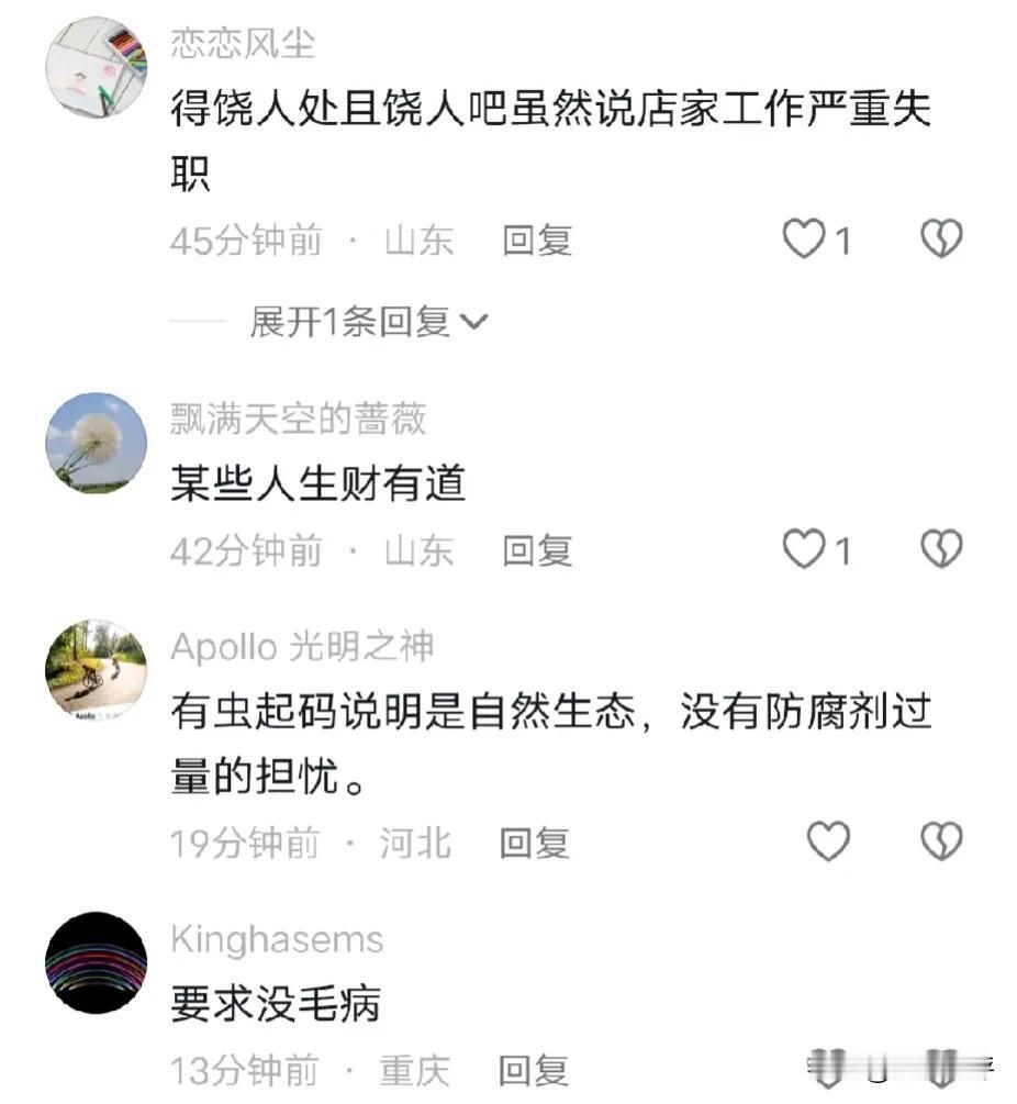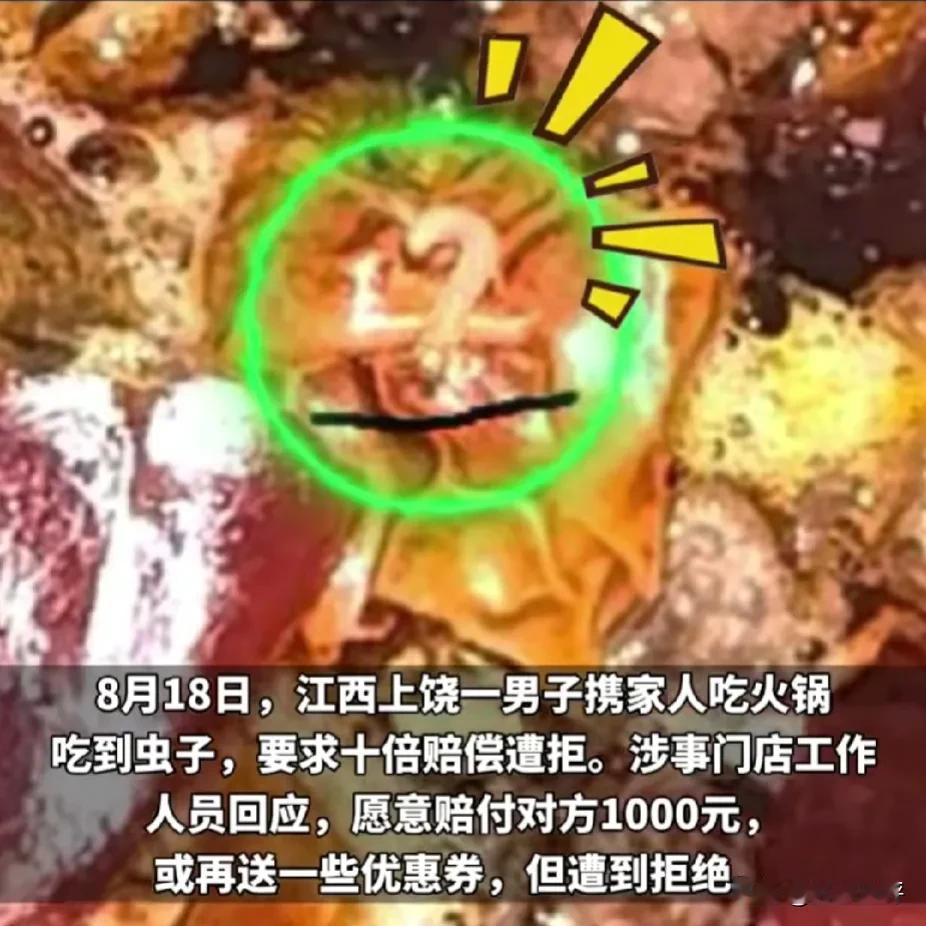 人心啊!生财有道?还是合理诉求?8月18日,江西上饶,一男子携家人吃火锅吃出虫子,要求十倍赔偿遭店家拒绝,称只能赔偿1000元。男子诉求反遭吐槽:有些人就是生财有道! 男子带家人吃火锅时,发现肉眼可见的大虫子,一次愉快的家宴,变成令人作呕的体验,男子大为恼火,要求店家十倍赔偿,却遭到店家的拒绝。 店家称,发现的虫子是辣椒虫,该批食材已经处理了,只能赔偿男子1000元,可以再送一些优惠券。 顾客是上帝,消费者的权益不是讨价还价的买卖。男子觉得火锅店没有诚意,是在欺负消费者,拒绝接受1000元的赔偿,举报给了市场管理部门。 当消费者在食品中发现异物,如虫子,可以依据相关法律法规要求赔偿。消费者除了要求赔偿损失外,还可以向生产者或者经营者要求支付价款十倍或者损失三倍的赔偿金。 然而,男子的做法却遭到部分网友的吐槽:“有些人就是生财有道!” 网友称,得饶人处且饶人,能吃出虫子的食材才是纯天然的,这个消费者挺贪的。又不是死老鼠。虫子比添加剂都健康了很多。 常言道“人心难测”,消费者维护自身权益凭什么要打折扣,这不是纵容店家不重视食品安全吗? 友友们,男子的做法是生财有道?还是合理诉求?