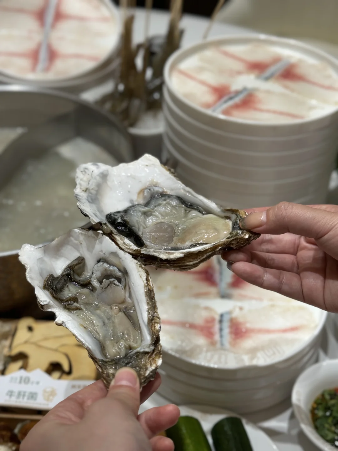 斑鱼粥大米鸳鸯锅 一半原味:涮火锅吃。 0.5毫米的鱼片,真的是薄如蝉翼,而且🈚️刺,放心大胆的吃。配上店里的调料🧂,又鲜又嫩,连吃了9盘! 一半鱼粥:现熬现喝。 鱼肉、鱼骨、梗米香米现熬的粥,预计要煮半小时样子,上了锅底赶紧煮,过程中记得搅拌,不然吃的时候可能🤔 但是,真的好好喝!在吃饱的情况下,又喝了两碗,特别鲜!!!