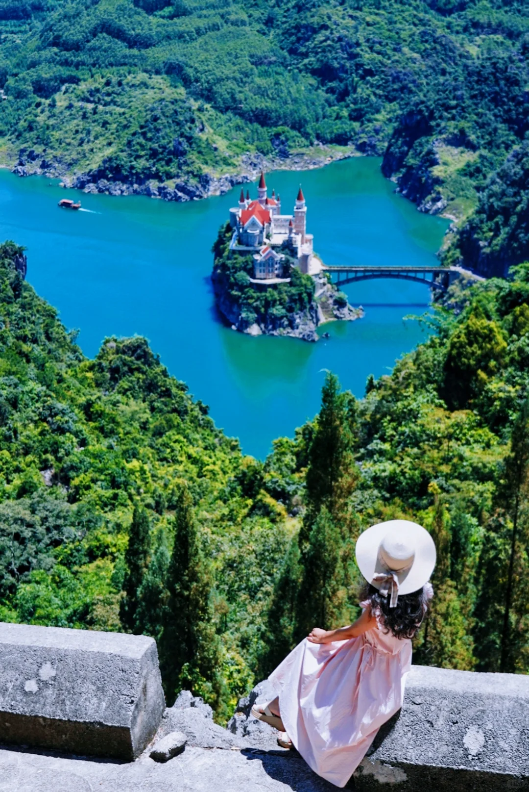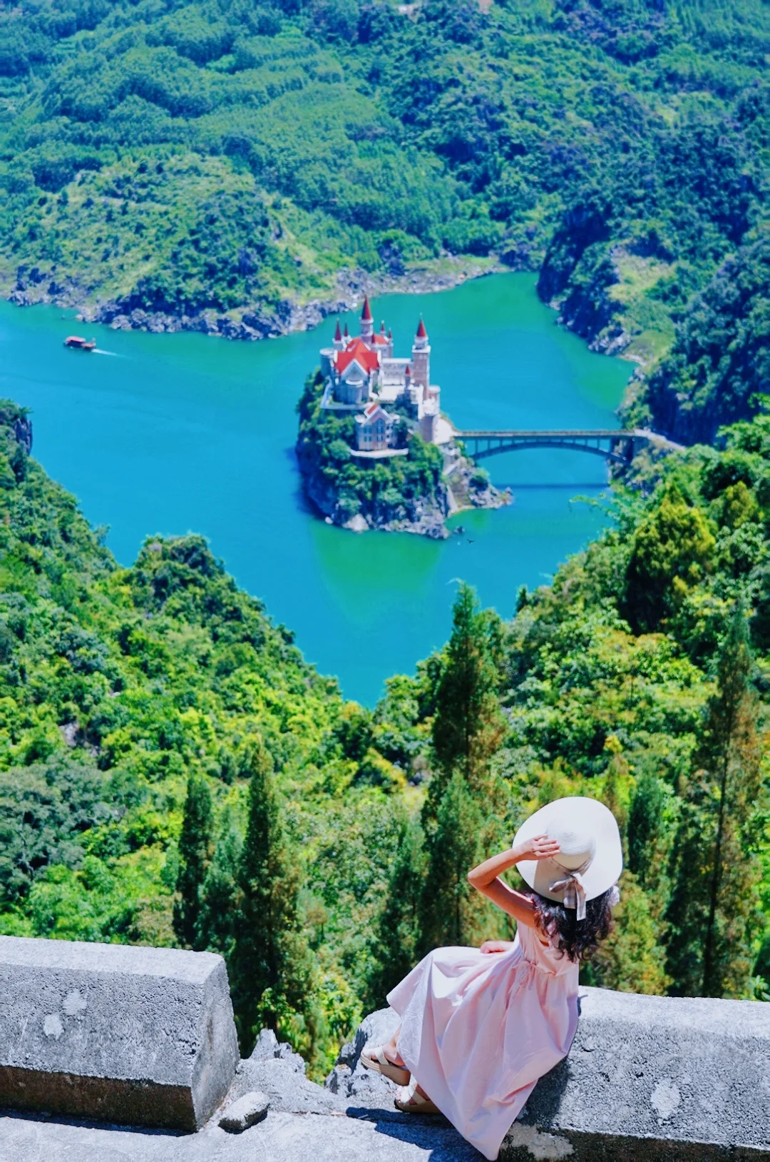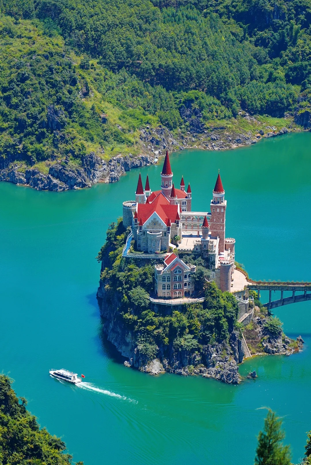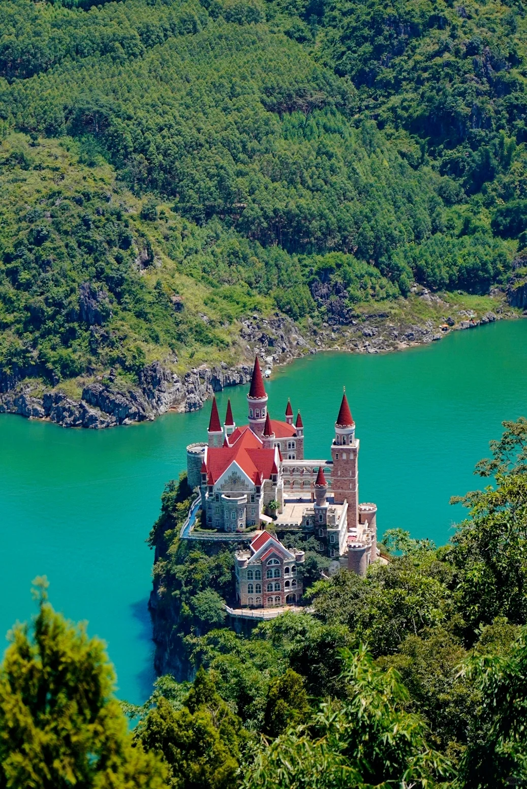 建在贵州兴义万峰湖一座岩石岛上的仿欧式建筑