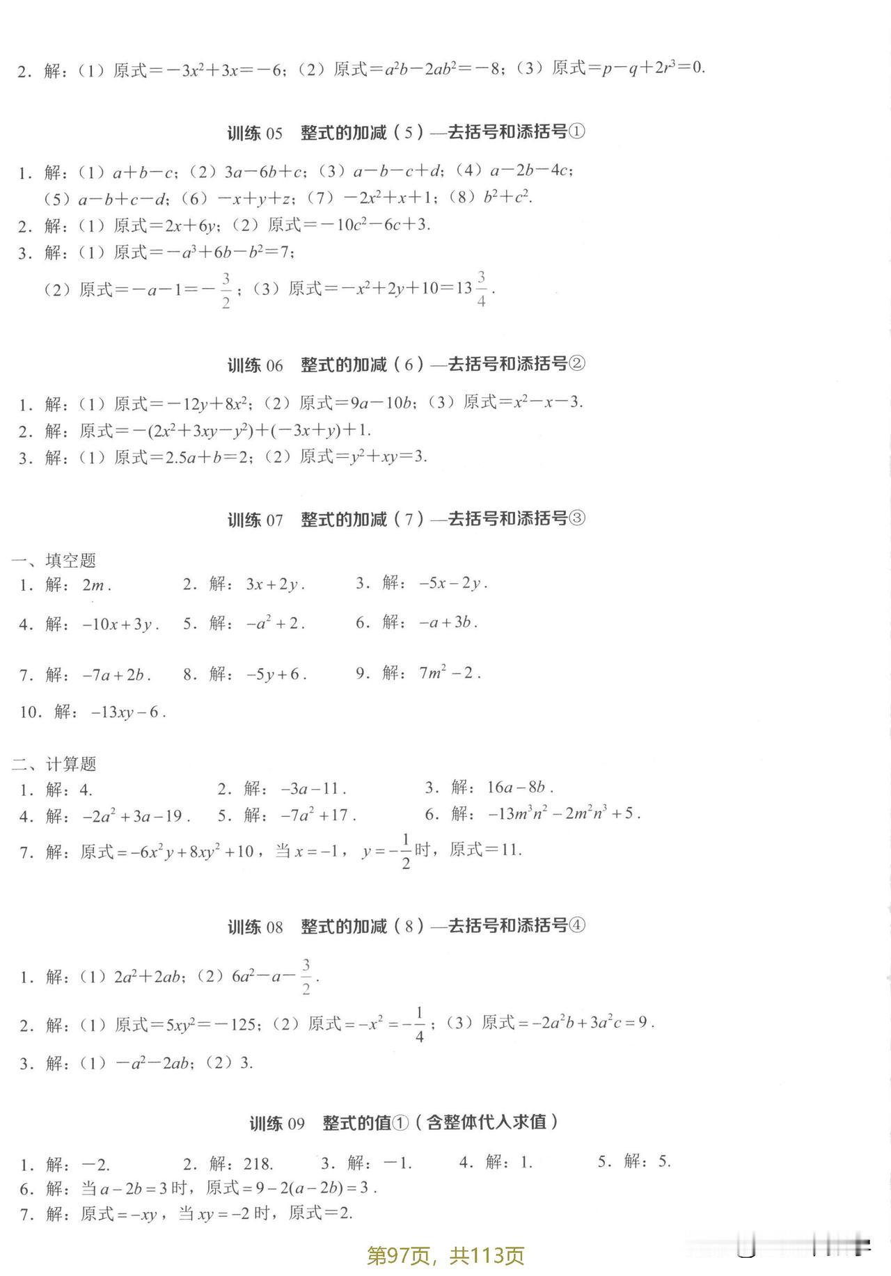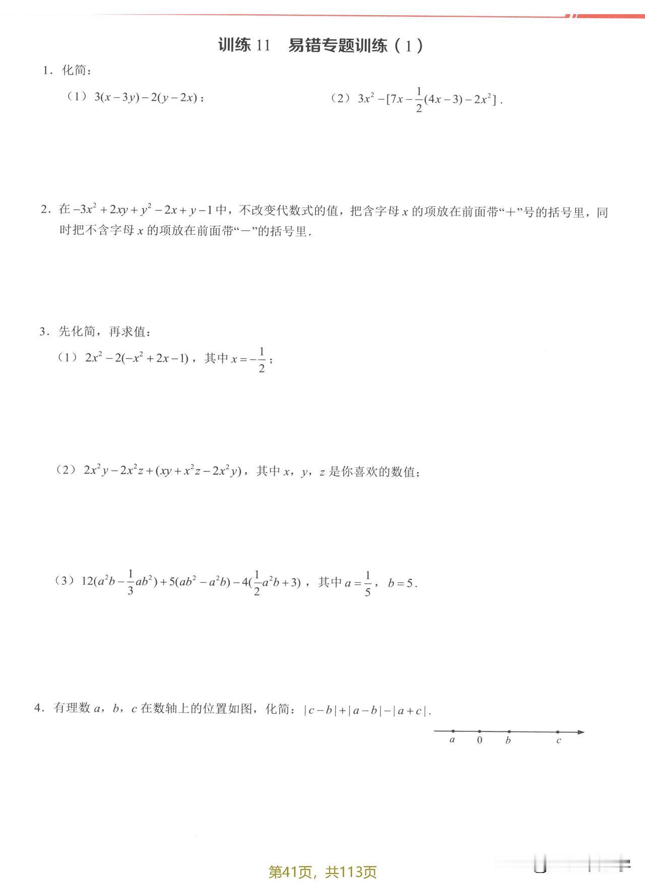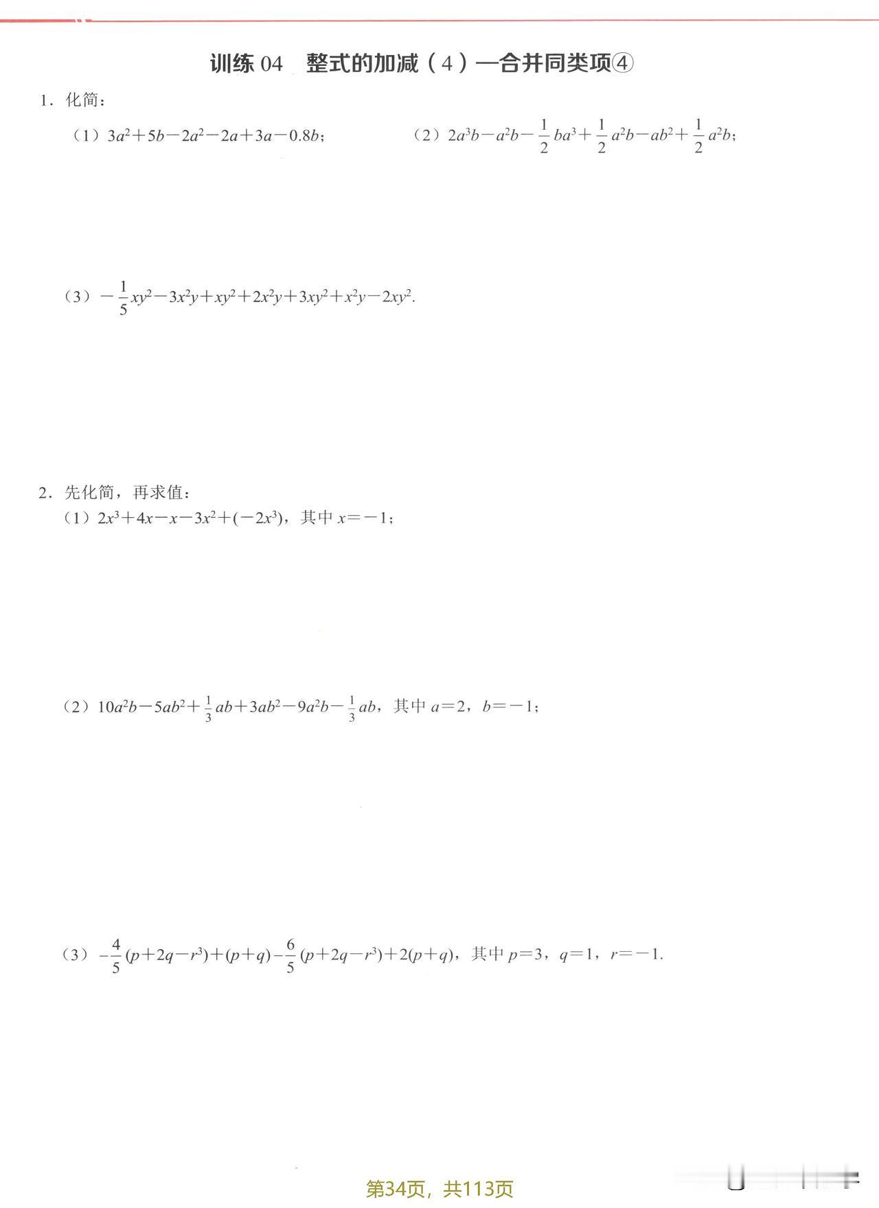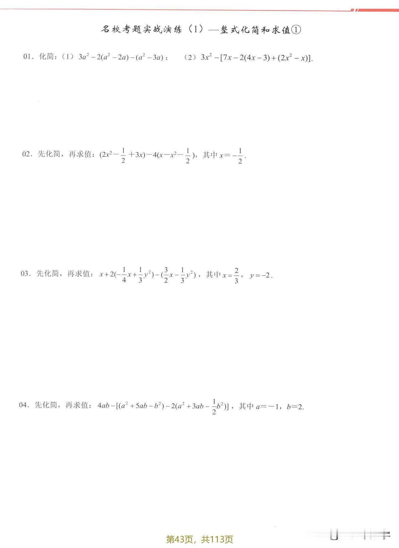 整式这个章节介于有理数和一元一次方程之间,有着承上启下的过渡作用。计算能力在代数每个章节都显得比较关键,所以今天给大家分享第二章的12个专题计算。