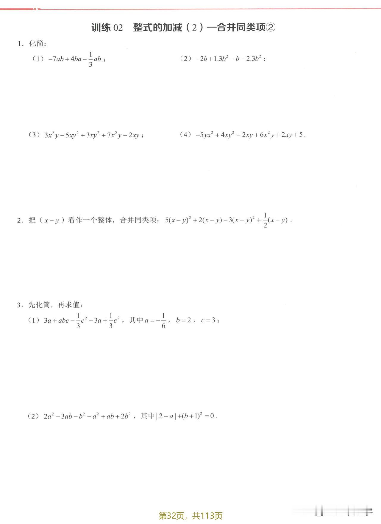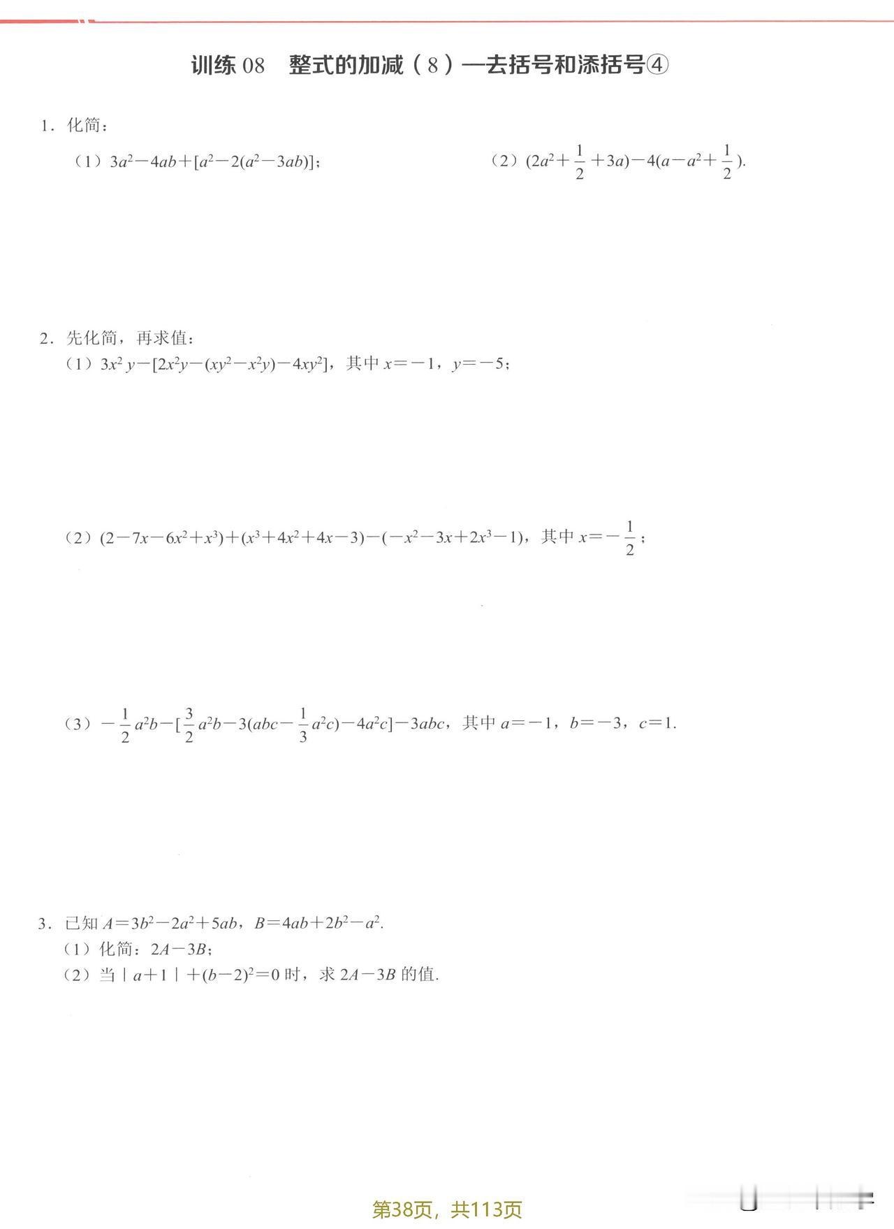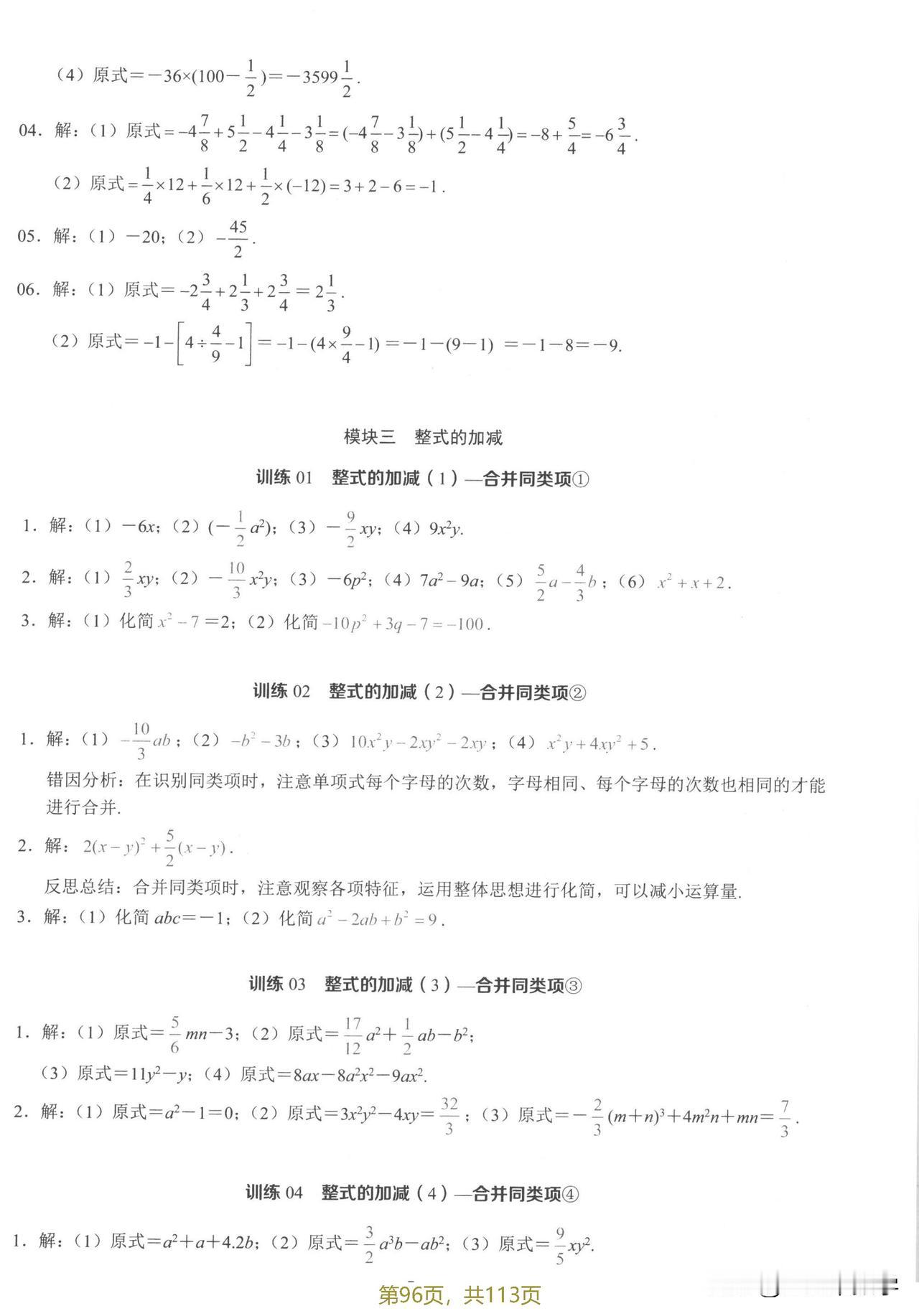 整式这个章节介于有理数和一元一次方程之间,有着承上启下的过渡作用。计算能力在代数每个章节都显得比较关键,所以今天给大家分享第二章的12个专题计算。