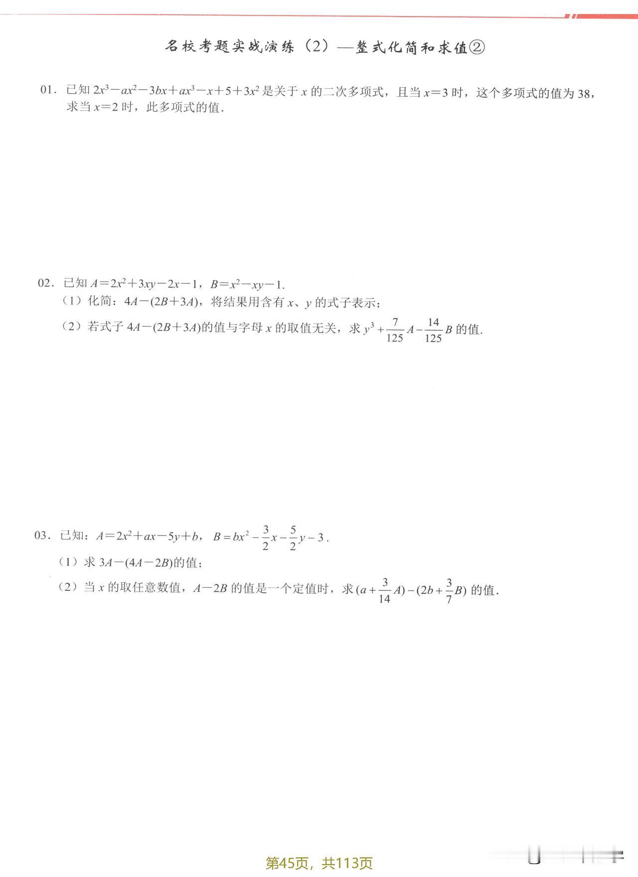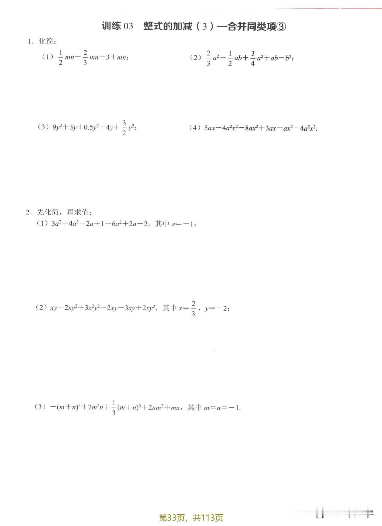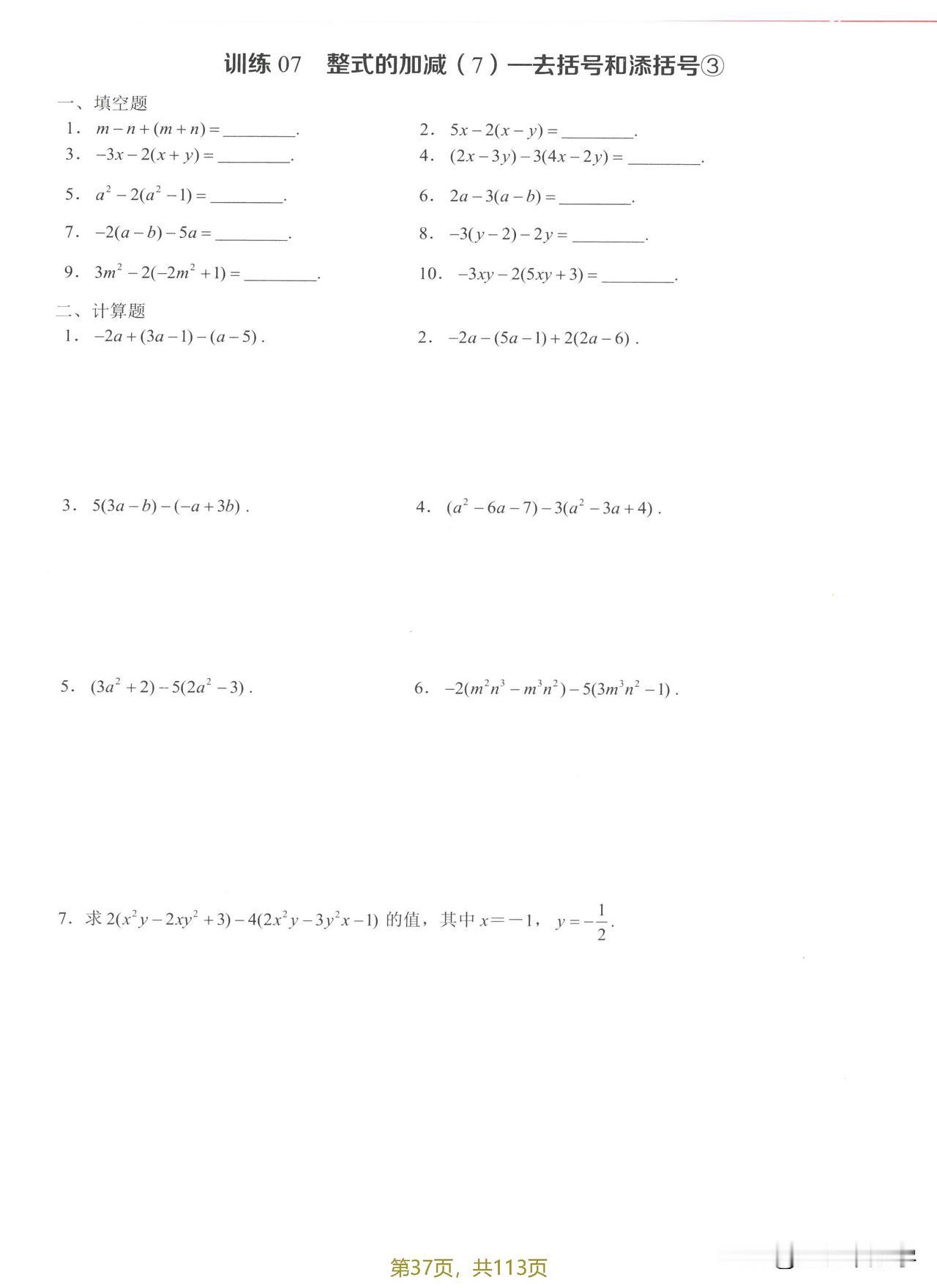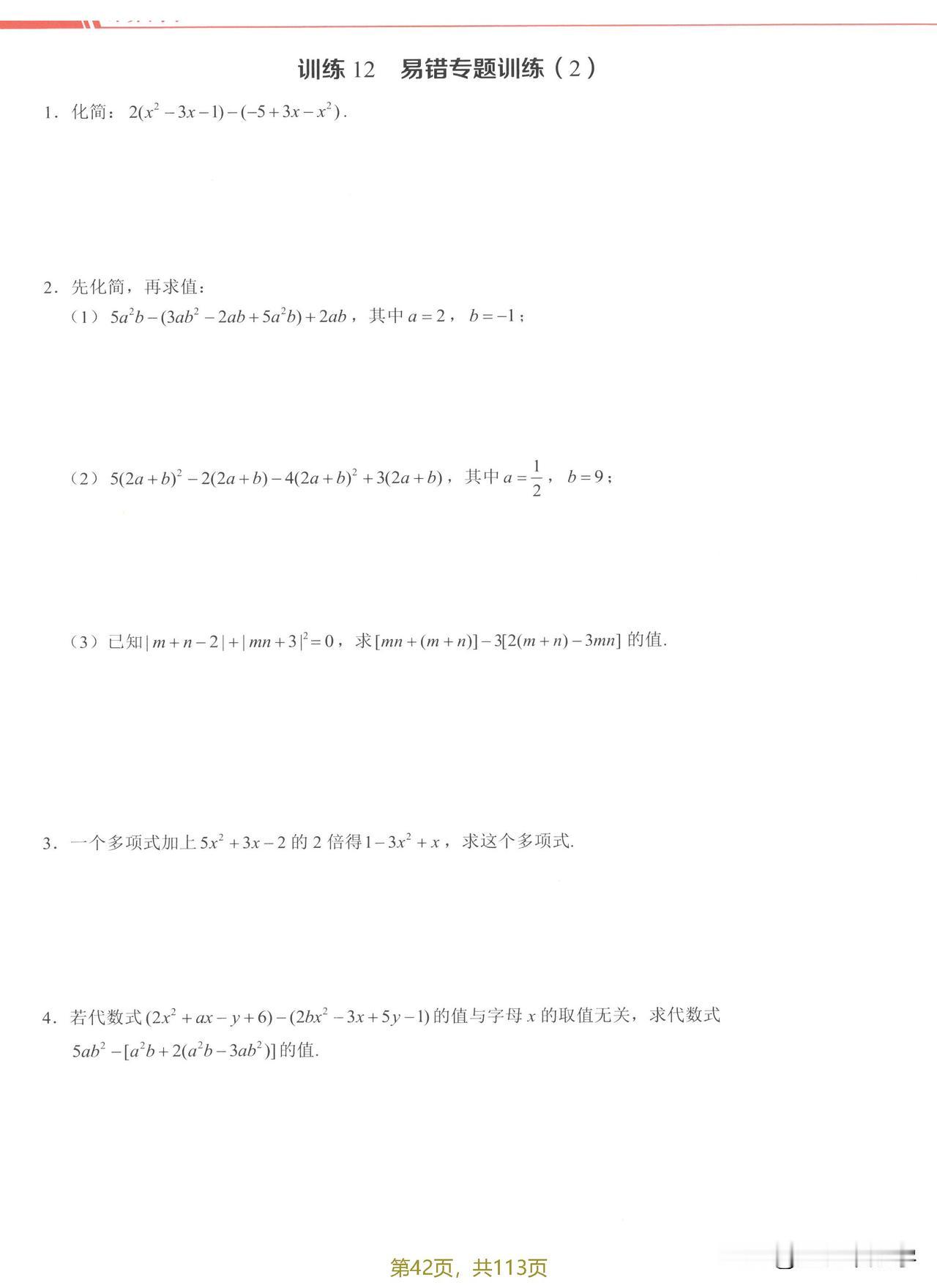 整式这个章节介于有理数和一元一次方程之间,有着承上启下的过渡作用。计算能力在代数每个章节都显得比较关键,所以今天给大家分享第二章的12个专题计算。