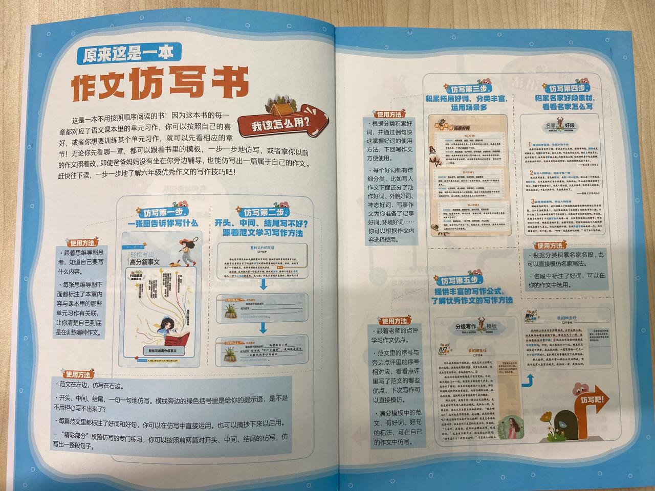 怎样提升作文水平?其实,一直以来,最靠谱的做法是仿写。模仿,也是我们学习语言的最基本方法。孩提时,模仿爸爸妈妈的发音,第一次学会喊爸爸妈妈,;大一点了,看着动画片里的角色,学会了普通话;上学之后,跟着老师的示范,第一次学会说和写。一生都在模仿。 学生该怎么模仿?如果能有一份比较精细靠谱的资料,确实是可以帮助到学生的。发现一本宝藏级学生作文资料书。我手头是六年级的,我仔细看了看,确实不错。作文小书 小学作文提升仿写卷