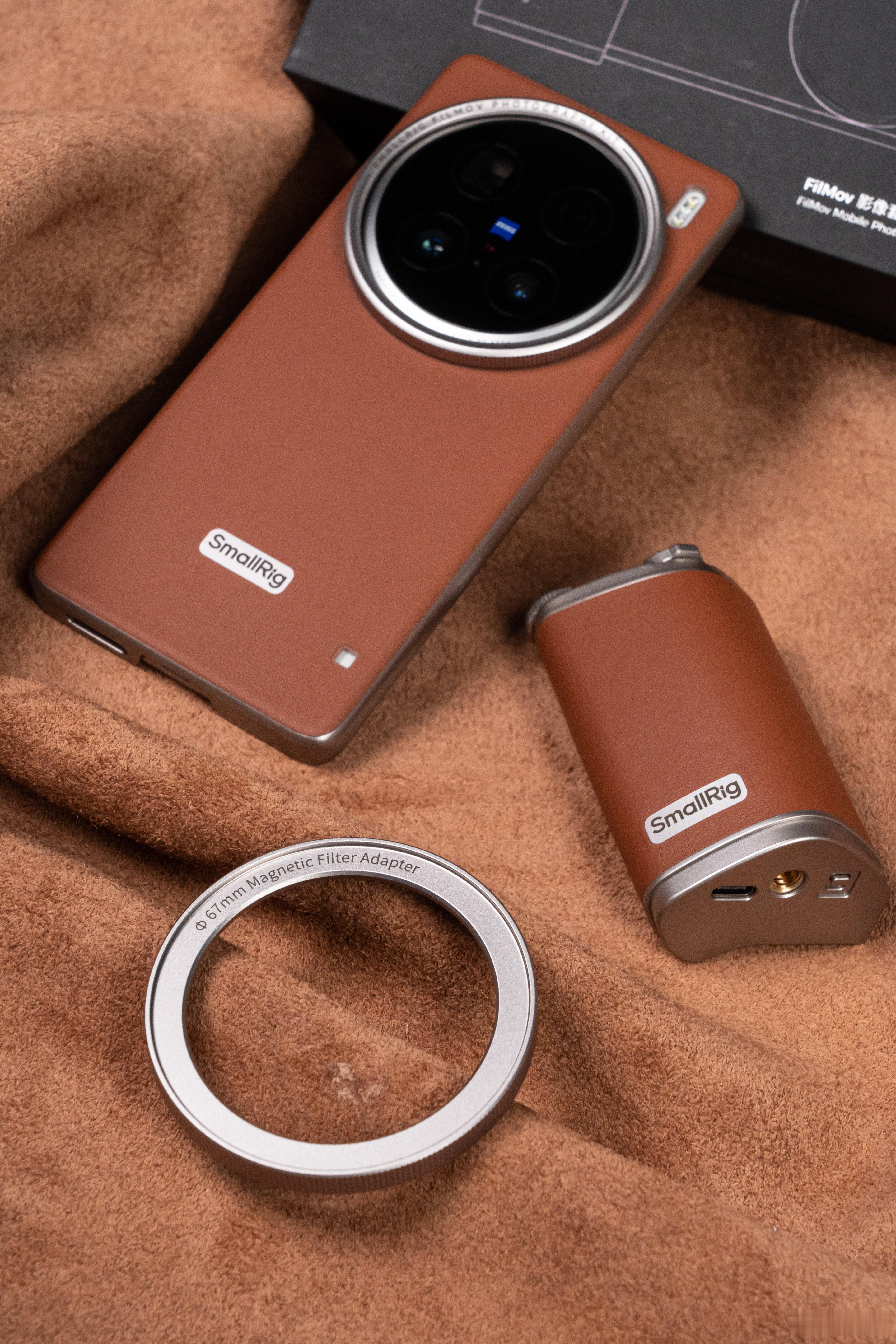 这是斯莫格和vivo联合开发的影像套装,棕色素皮更显复古感,而且足够轻盈,套装内含有手机壳、无线控制手柄,还有67mm 磁吸滤镜转接环,手柄通过蓝牙与手机连接,操作简单,能够进行对焦、调焦、曝光调节、拍摄等控制,使用起来真的有种在用专业相机的感觉,大大提升了手机摄影时的体验感~