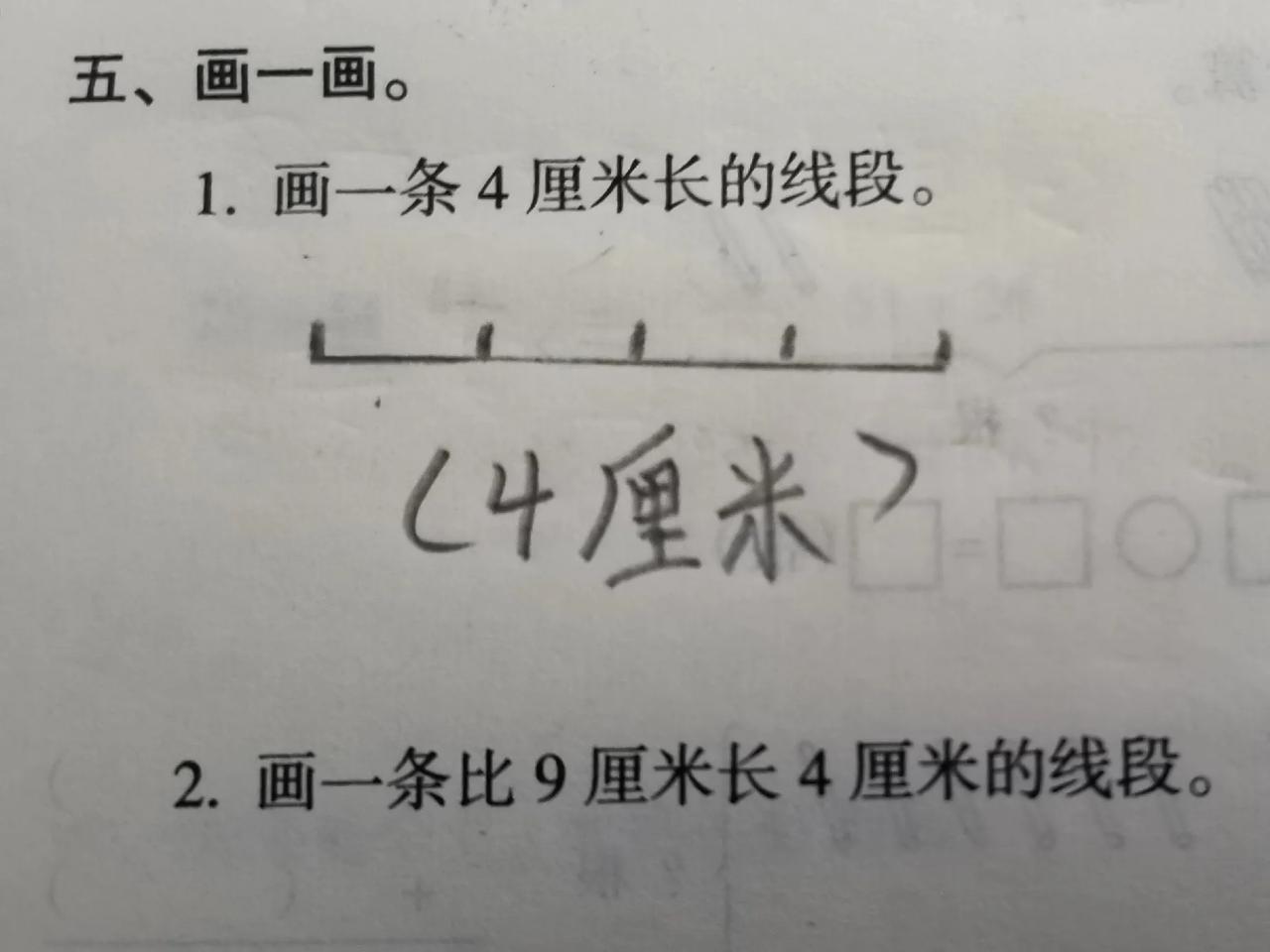 打死也没想10年后又被数学给凉拌[捂脸] 看图求解答题—2 2.画一条比9厘米长4厘米的线段。 想半天不知道应该画多少? 画13厘米作业本才12厘米不够画, 画5厘米又不比9厘米长4厘米。 大家伙说说应该画多少厘米?