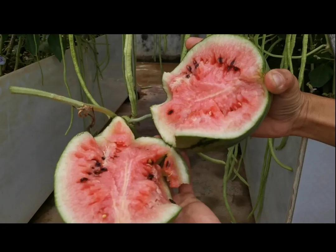 今天摘西瓜和豆角,自己种的西瓜真好吃,一个西瓜一个人吃,太过瘾了[捂脸][捂脸]