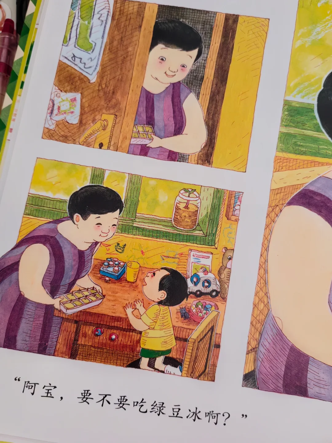 🌿我小时候家里煮过很多绿豆,不是买的,而是妈妈自己种的。这本绘本中,孩子和妈妈一起买绿豆,煮绿豆,做成绿豆冰,种绿豆,然后一起享受得绿豆的美味。