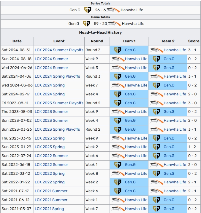 GEN完成了自2021年春季常规赛第二轮开始,对HLE的大场19连胜。