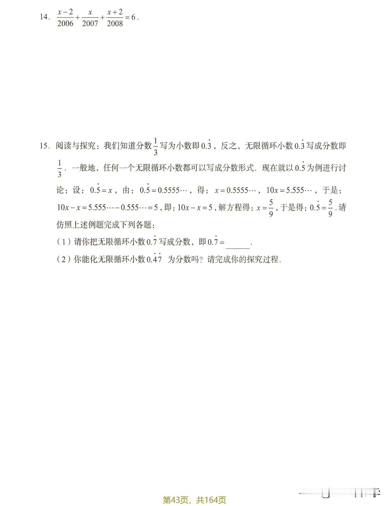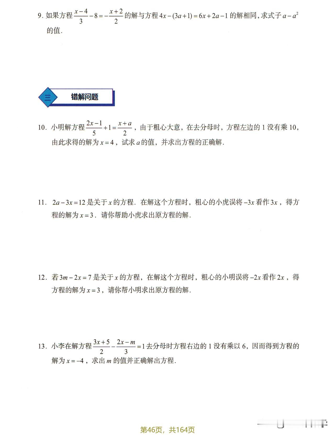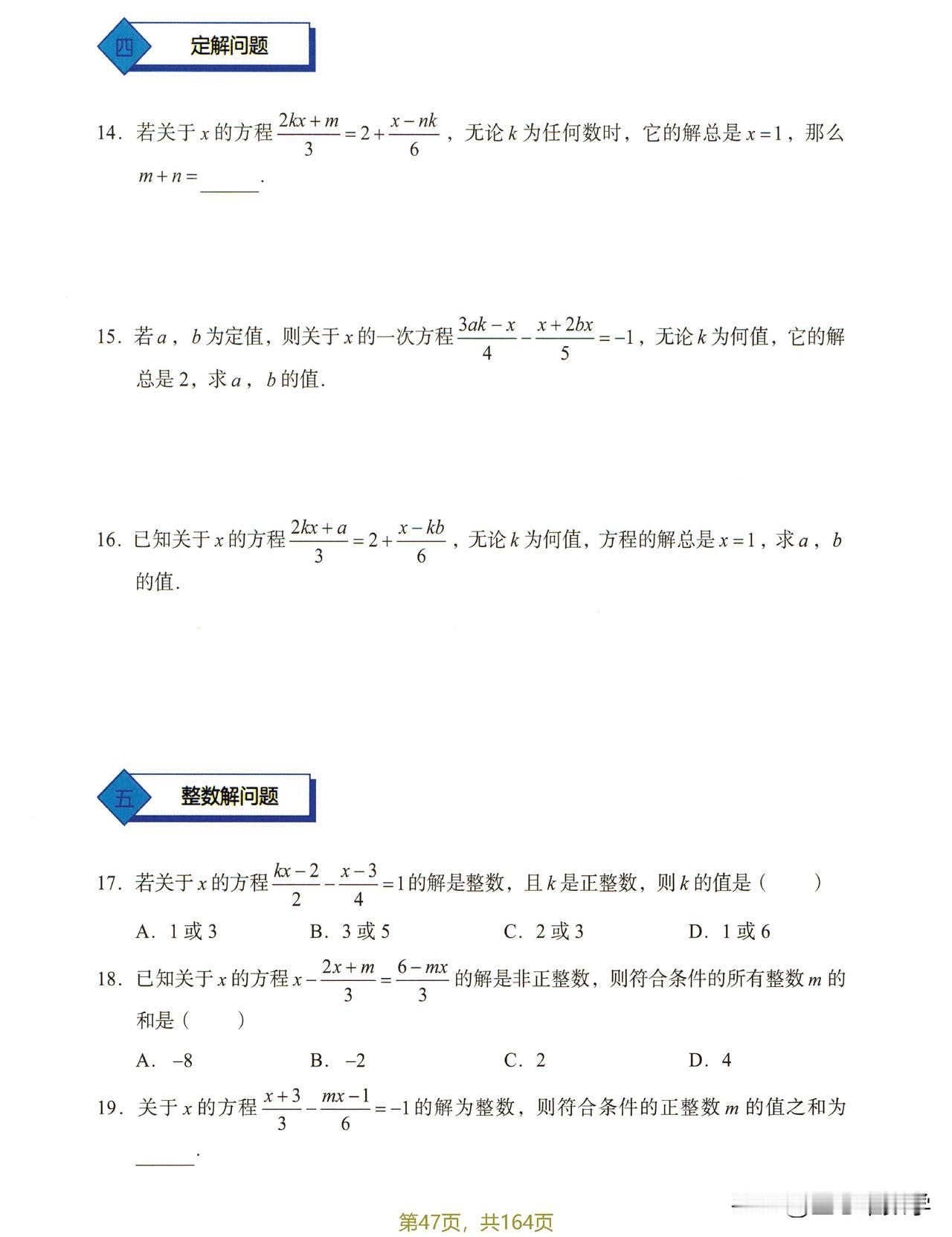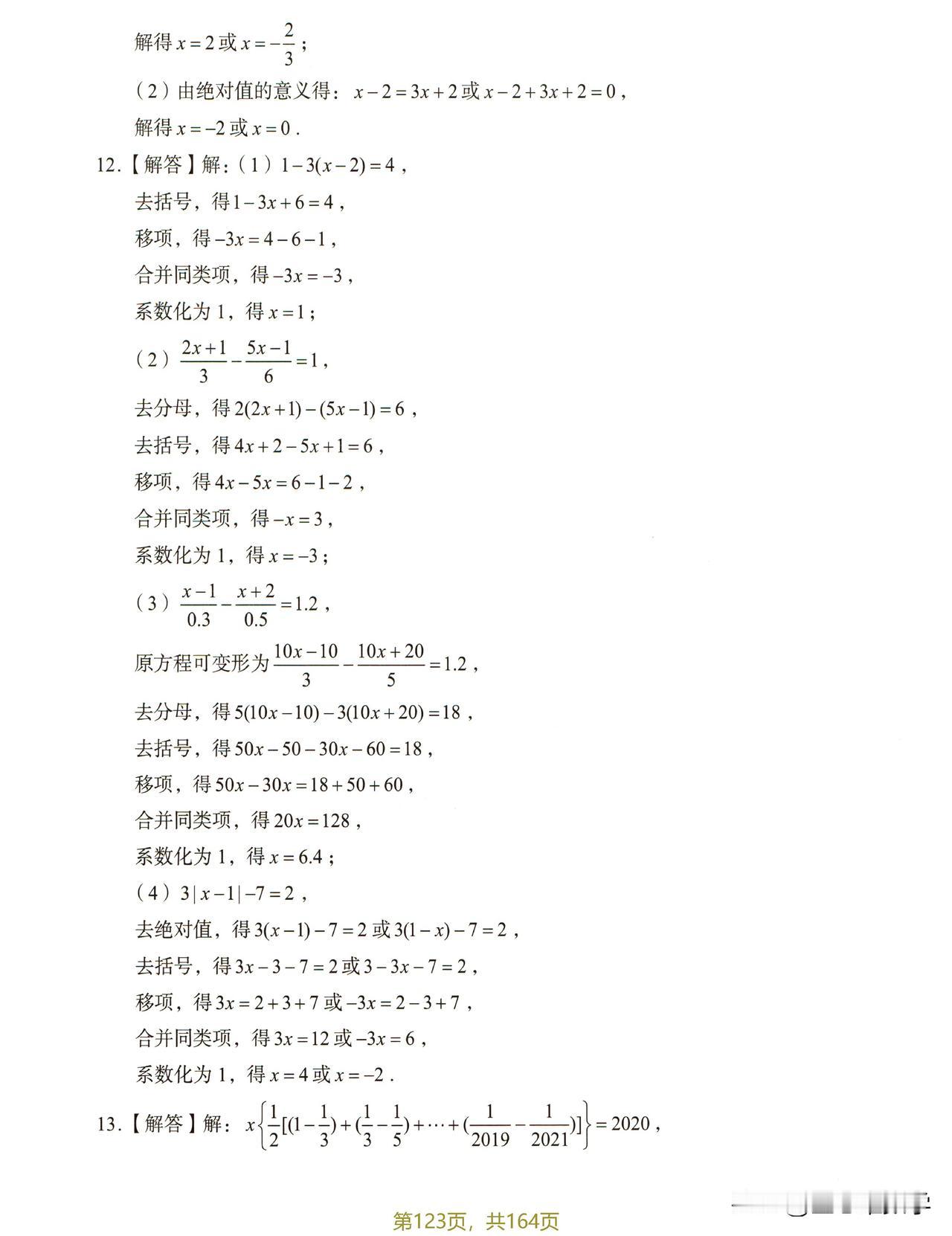 七年级数学专题训练#电子版资料# 1、一元一次方程; 2、含参方程; 3、利润问