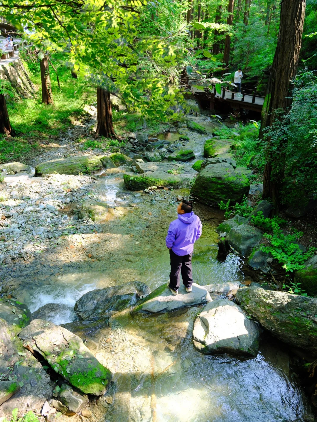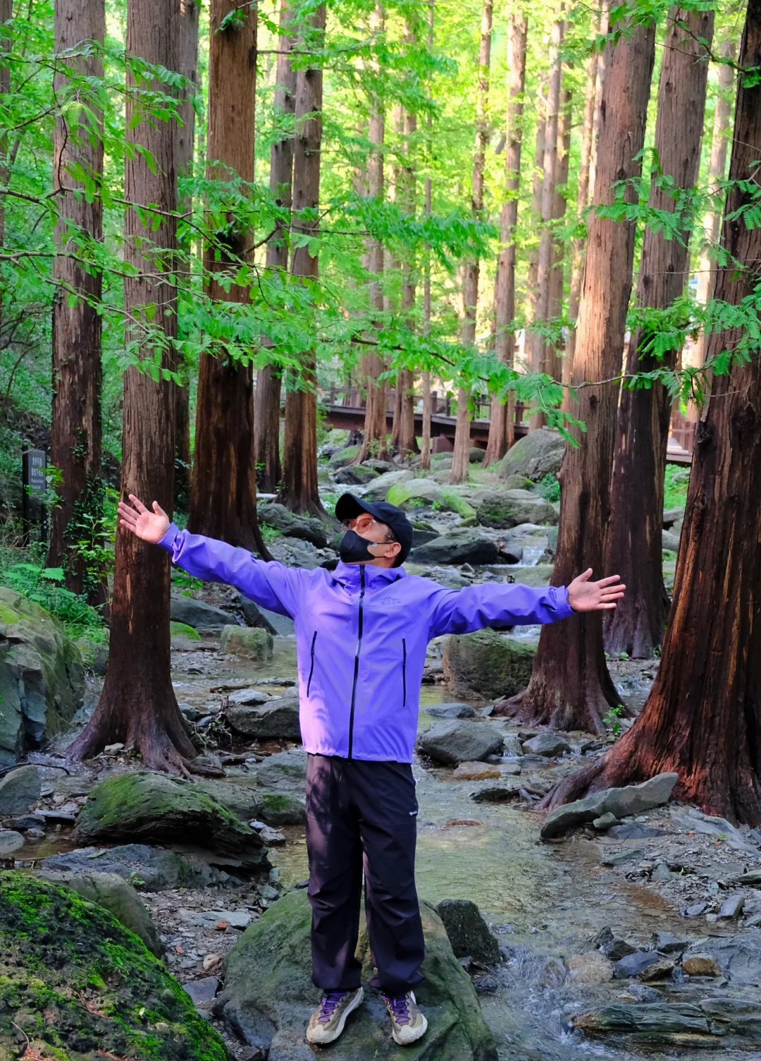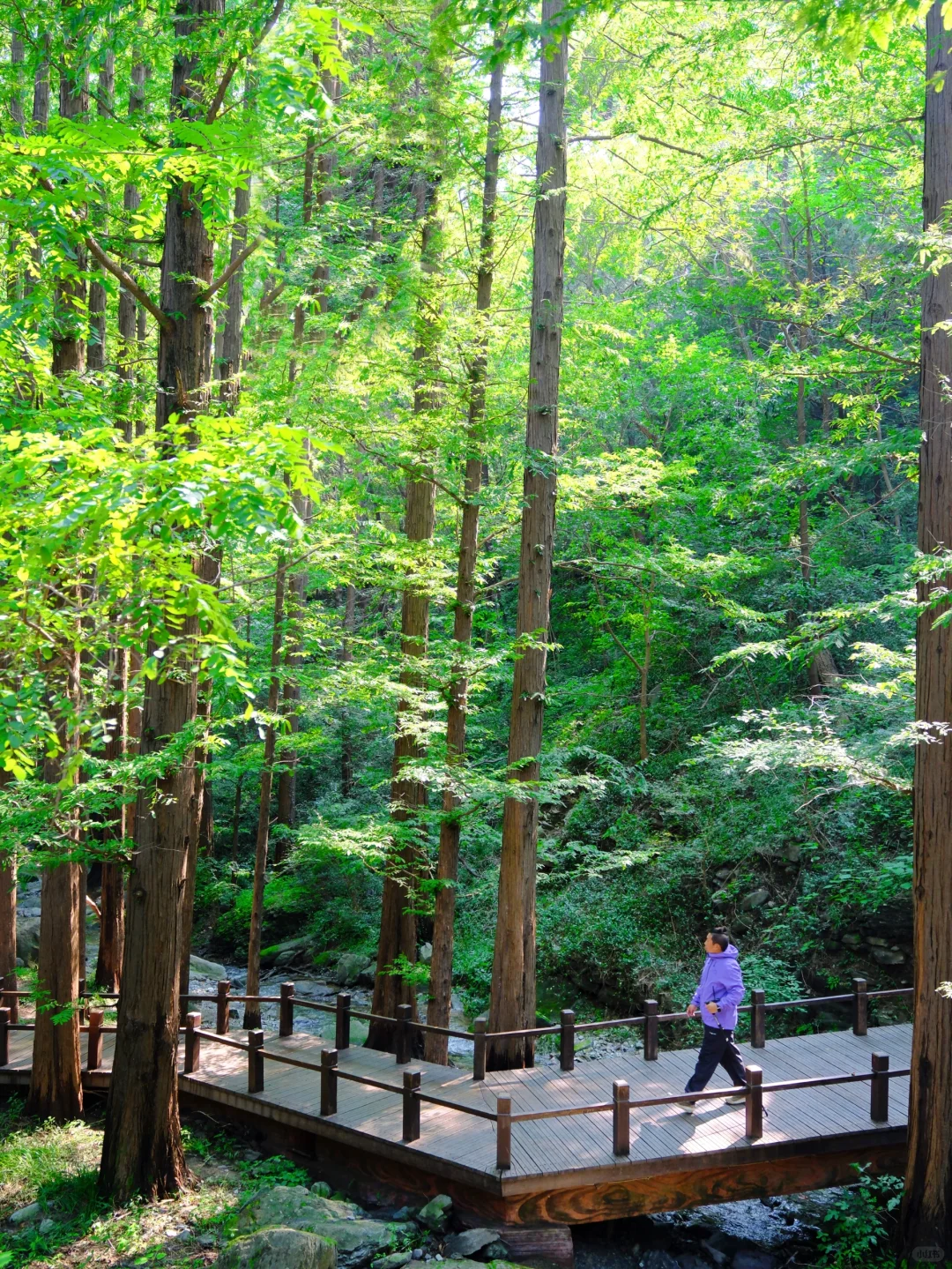 🌳溪水穿过木栈道,边上高大的水杉,小松鼠偶尔穿梭过去,鸳鸯嬉戏