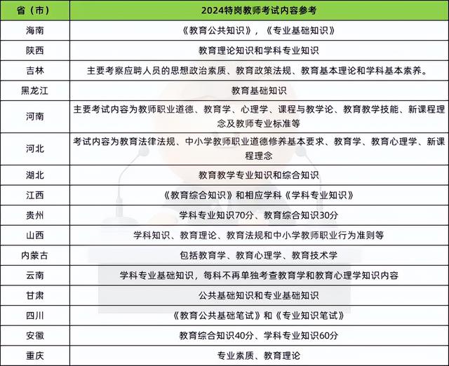 各省特岗教师考试内容参考: