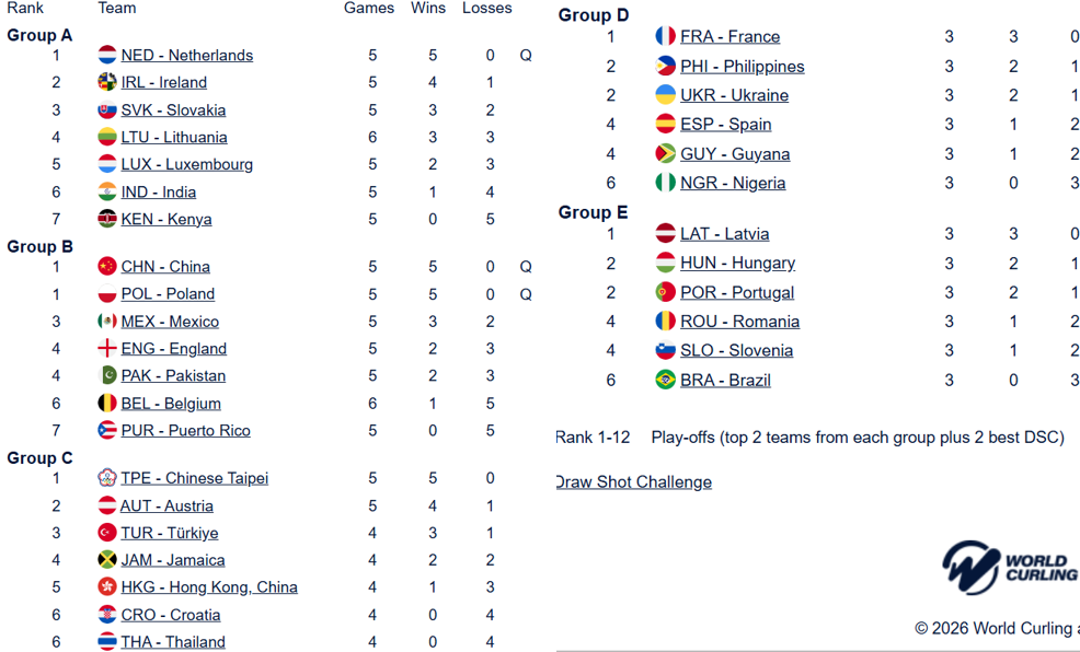 2026年混双冰壶世锦赛的资格赛今晚继续进行,此前拿到四连胜的中国队本场迎战2胜2负的巴基斯坦,最终中国9-6巴基斯坦,提前一轮锁定小组前两名,晋级下个阶段的12强赛,10号将迎战小组最强对手的波兰队,波兰同样是五连胜,中波之战将决出小组第一。
