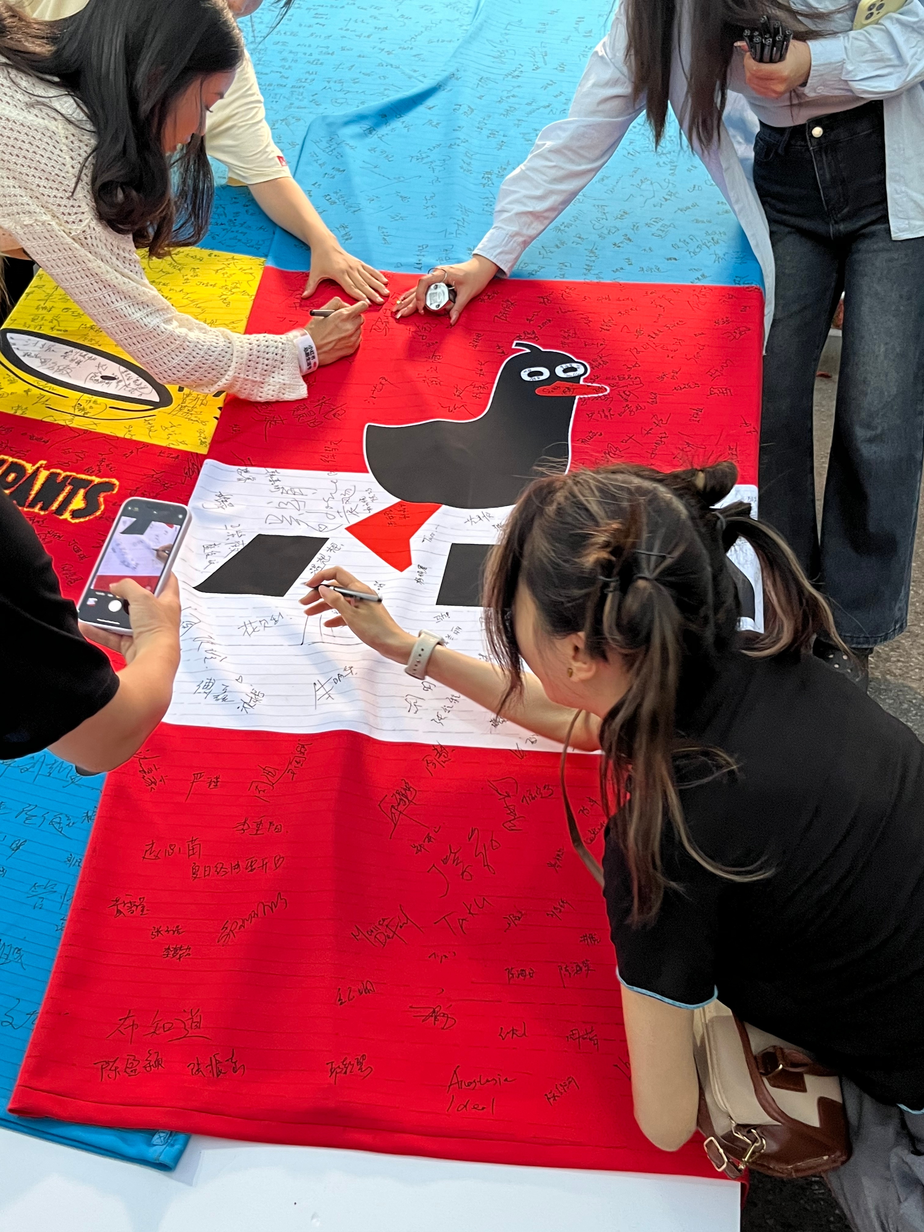 新裤子的粉丝这脑洞是无穷无尽是吗,昨天落日音乐会粉丝做了一条三米长巨型大裤子!水灵灵举着看演唱会顺便破了吉尼斯记录,新裤子还嘎嘎乐参与签名,救命啊,好怕台上唱着唱着笑出声!