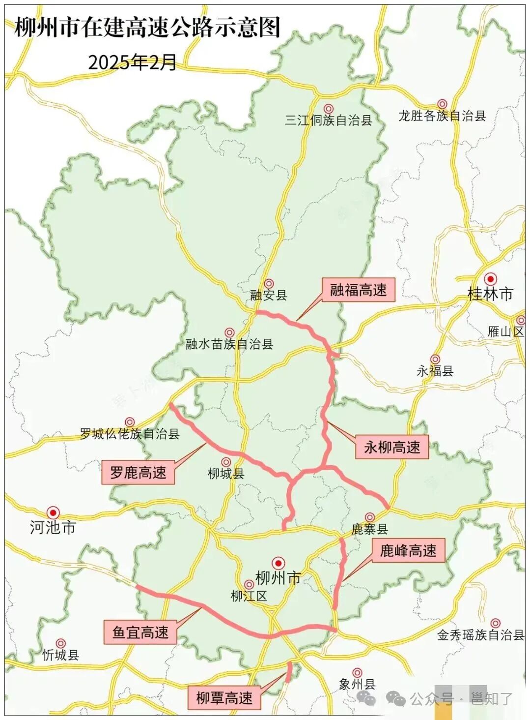 柳州目前在建高速超6条,超300公里,譬如鹿峰高速、鱼宜高速、永柳高速、罗鹿高速、融福高速、柳覃高速。