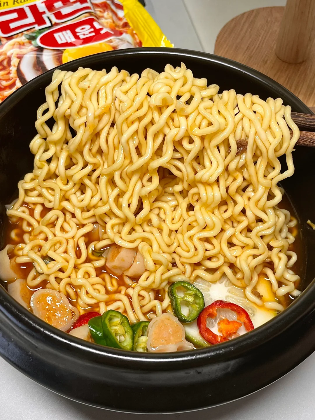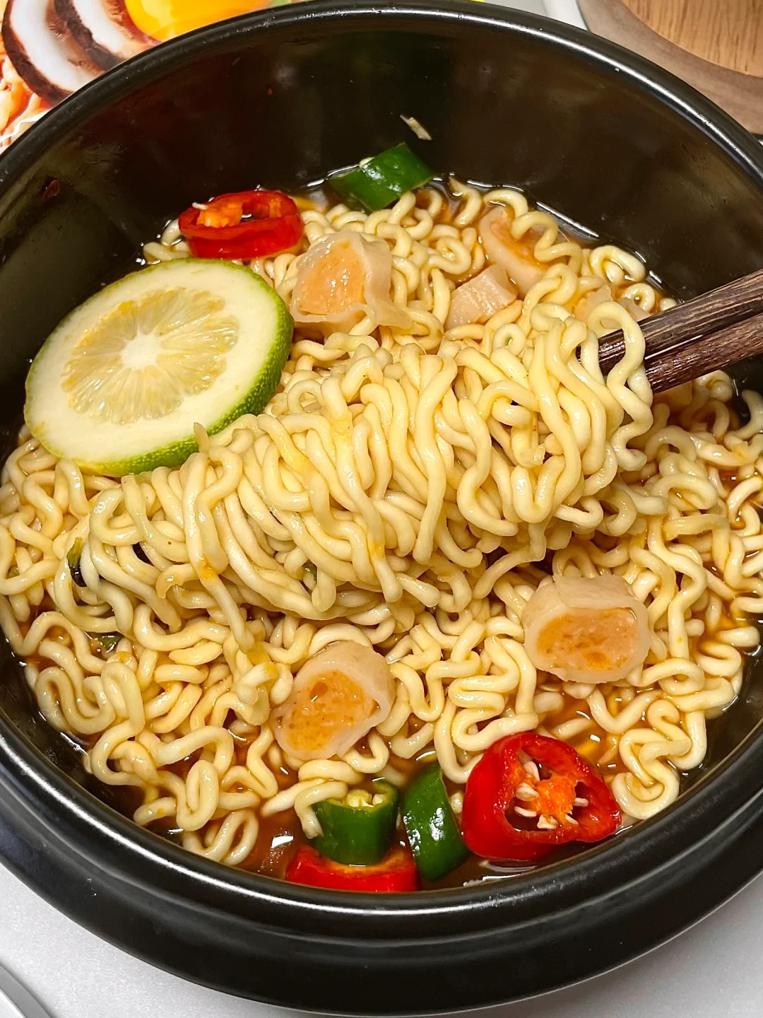 找到了潘玮柏的同款拉面!好吃到没朋友!! 面条是粗粗的那种!口感q弹劲道!嗦起来贼爽! 味道辣辣🌶️的好上头! 汤底也很浓郁~巨巨巨香! 还可以自己加点配菜和火锅丸子! 晚上饿了来这么一顿简直太满足了!!