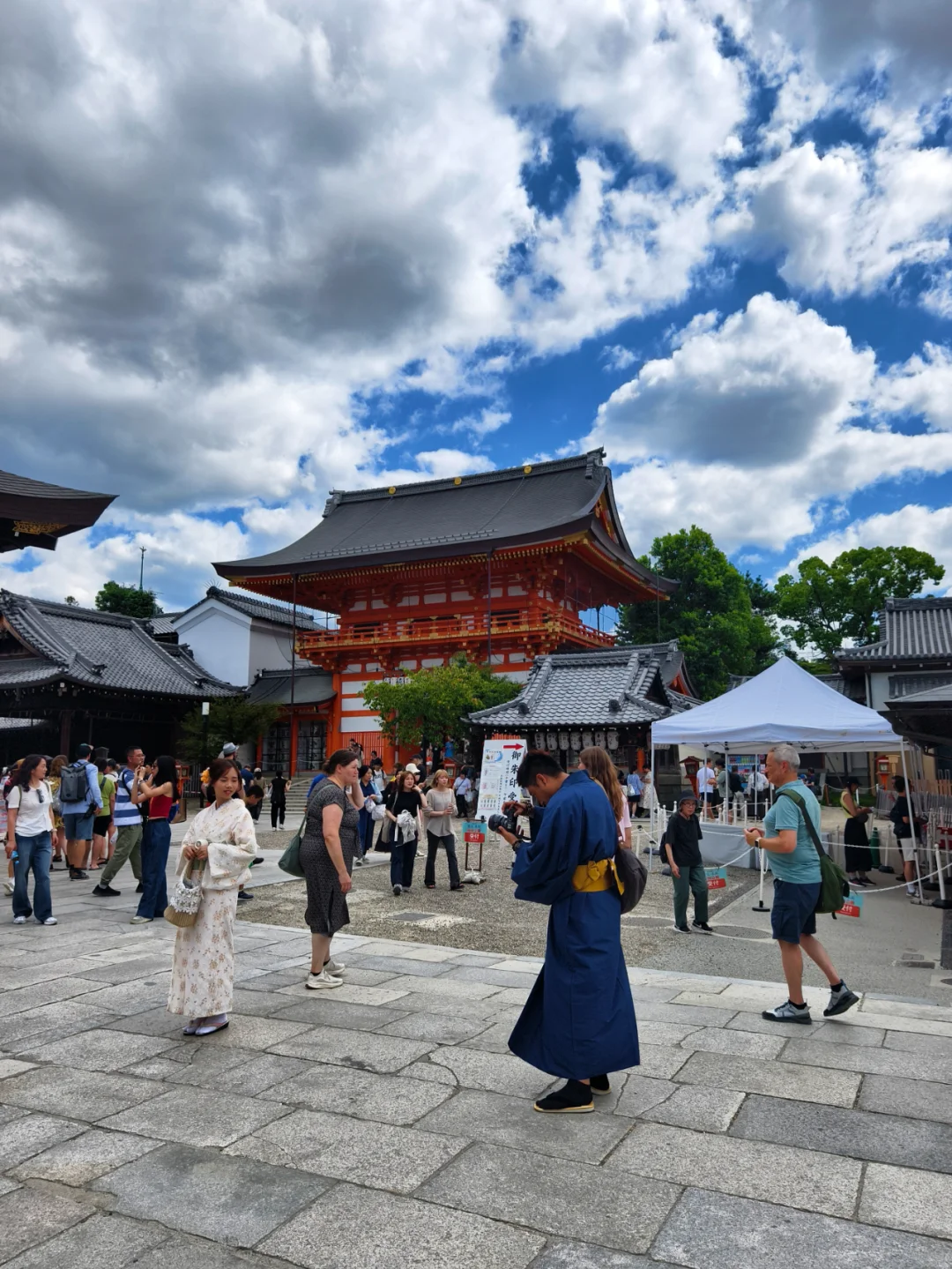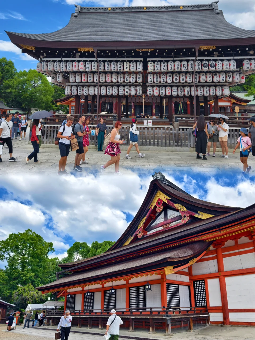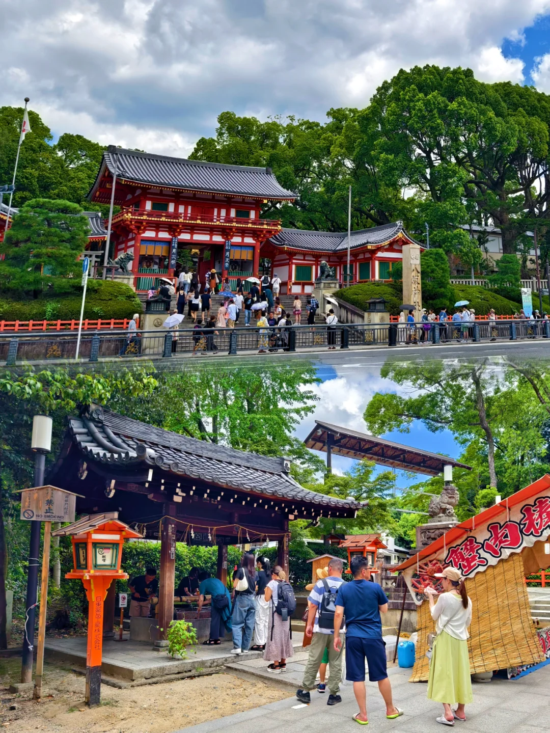🔥八坂神社位于日本京都府京都市东山区,是日本全国约三千座八坂神社之总本社,也称作“祇园神社”,其中有祈求美丽的神。神社的例行祭祀活动叫祇园祭,与东京的神田祭,大阪的天神祭并称为日本的三大祭。 🔥八坂神社是祇园的象征,创建于656年。八坂神社的建筑风格独特,主要以朱红色为主,与周围的绿色植物形成鲜明的对比。 🔥据说八坂神社的夜景很美,灯光效果一流,可惜这次没有时间来拍夜景了。 🔥京都的人力车夫大多是身材很好的小伙子。