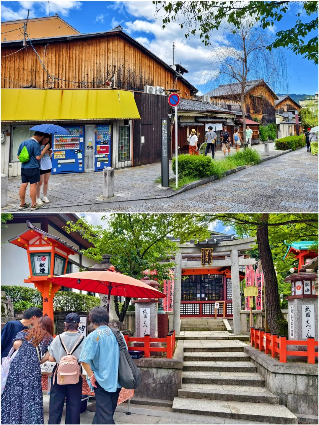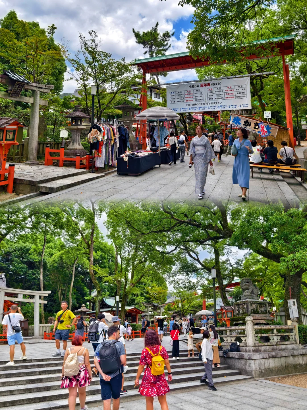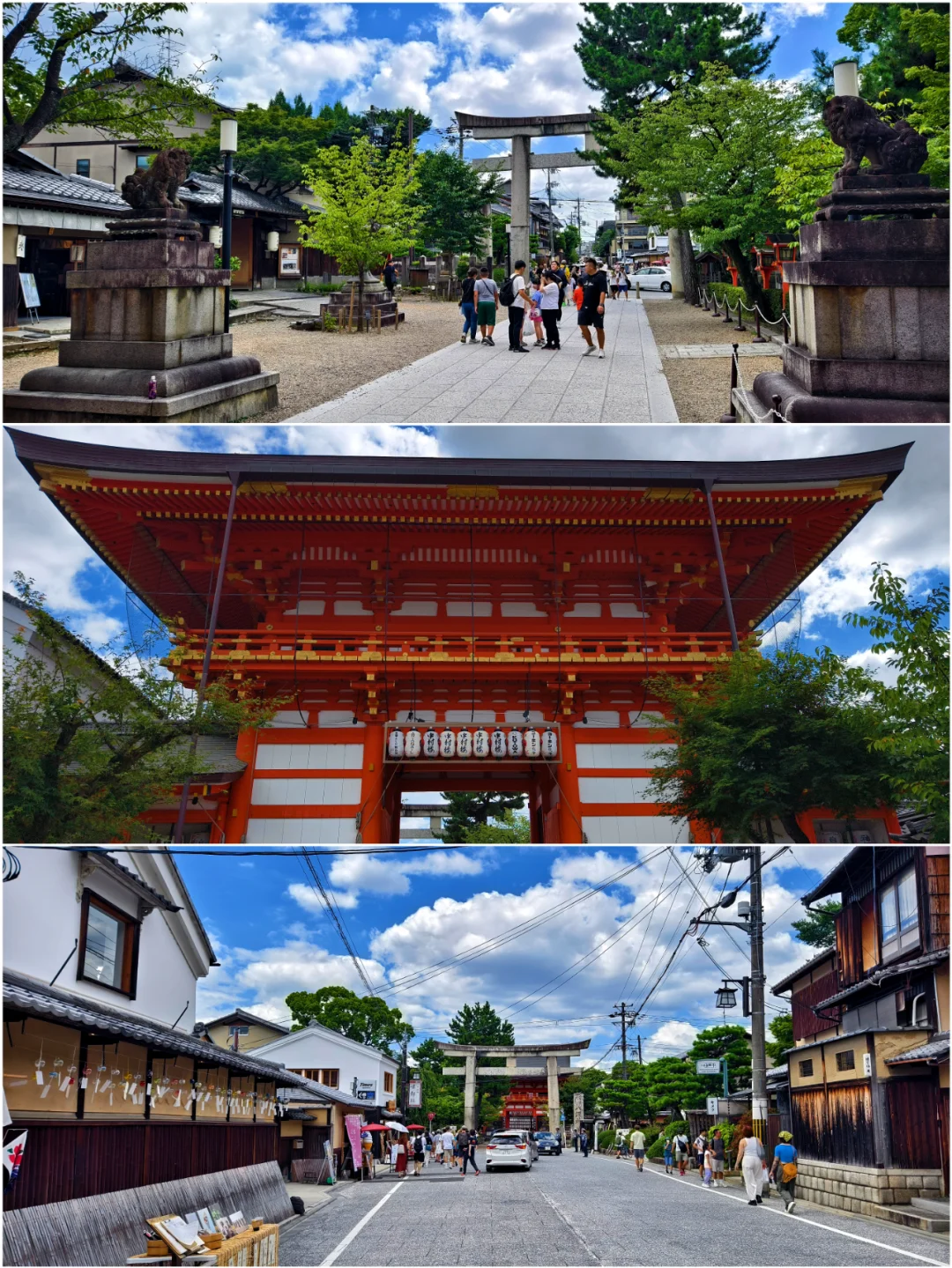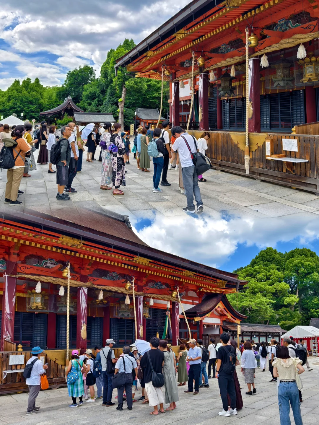 🔥八坂神社位于日本京都府京都市东山区,是日本全国约三千座八坂神社之总本社,也称作“祇园神社”,其中有祈求美丽的神。神社的例行祭祀活动叫祇园祭,与东京的神田祭,大阪的天神祭并称为日本的三大祭。 🔥八坂神社是祇园的象征,创建于656年。八坂神社的建筑风格独特,主要以朱红色为主,与周围的绿色植物形成鲜明的对比。 🔥据说八坂神社的夜景很美,灯光效果一流,可惜这次没有时间来拍夜景了。 🔥京都的人力车夫大多是身材很好的小伙子。