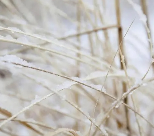 寒霜无情地冰冻住枯黄的干草,