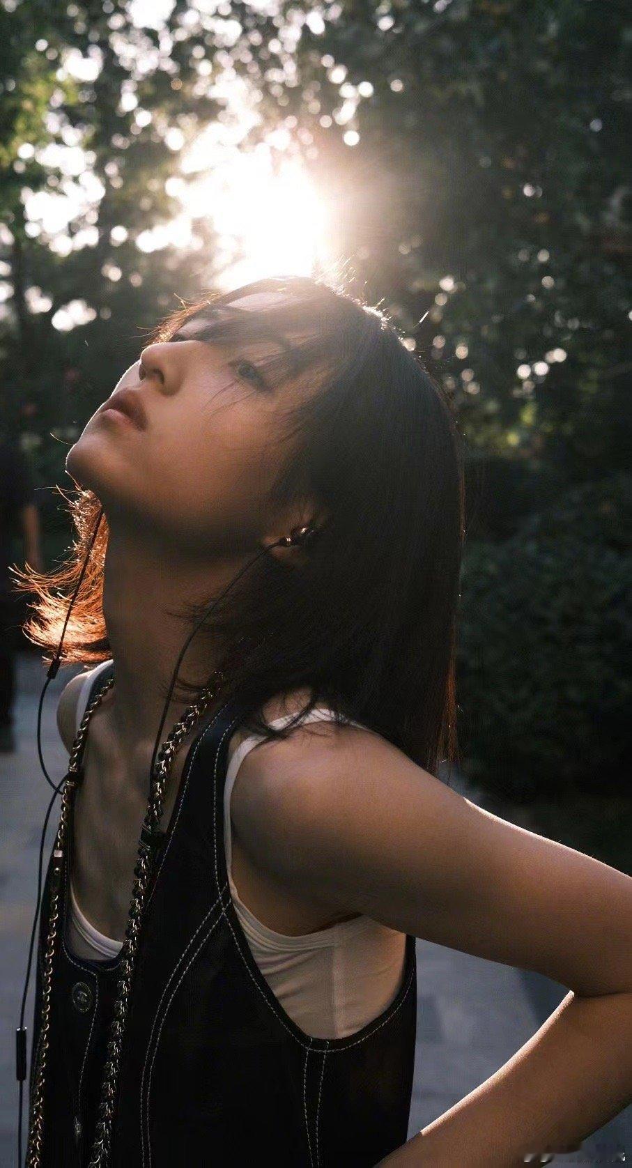 #张子枫秋日光影随拍#张子枫发博分享最新营业照,马甲造型率性利落,又美又飒的子枫啊,光影氛围感拉满~[哇]#张子枫皮马甲造型#