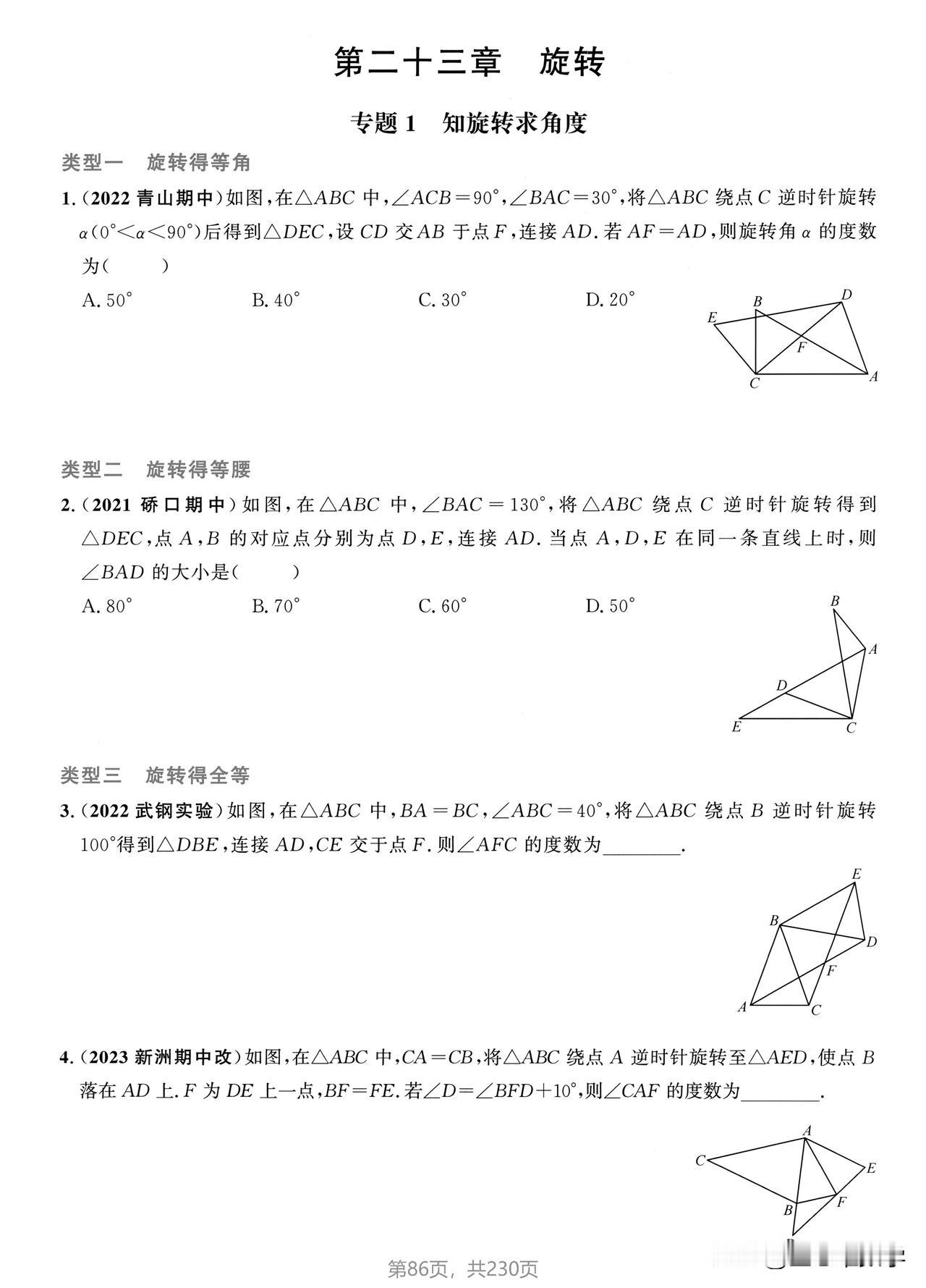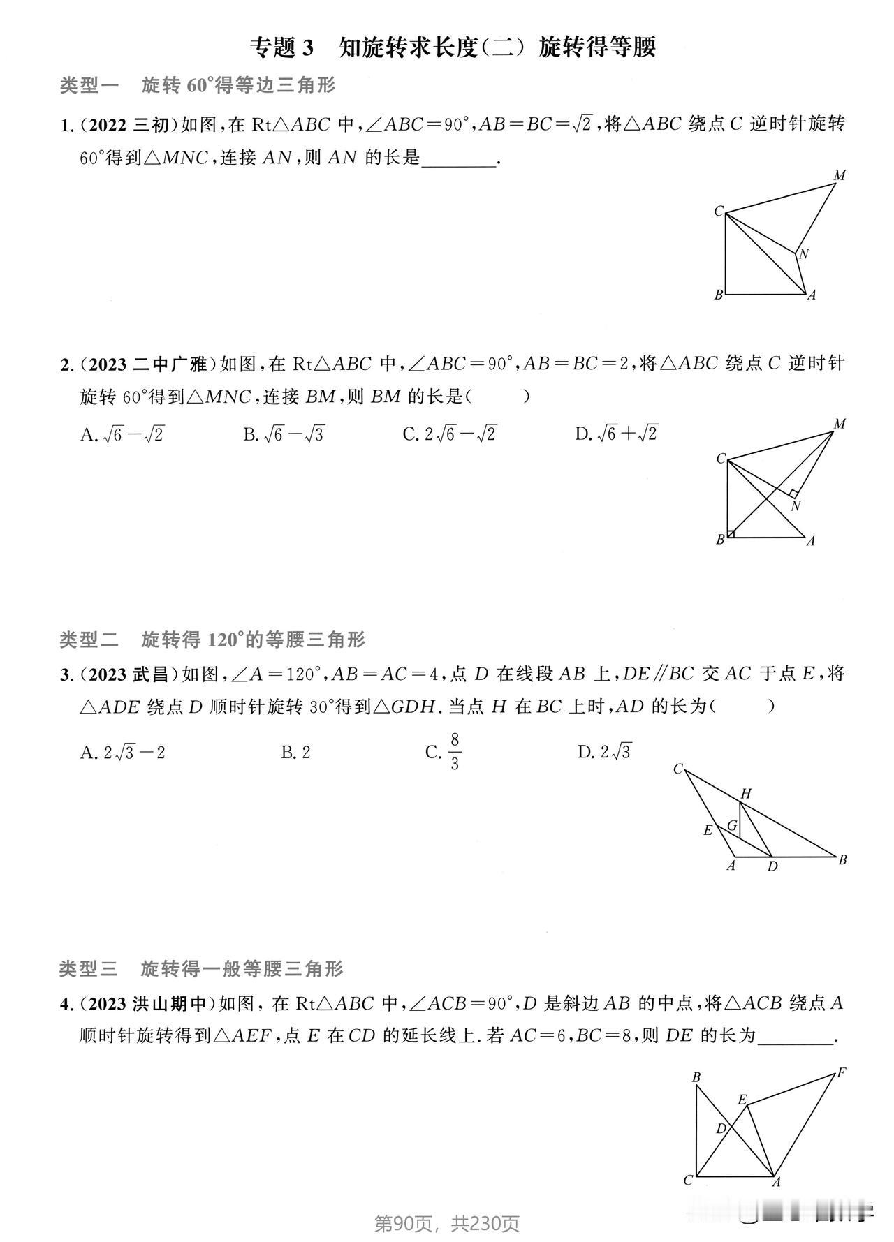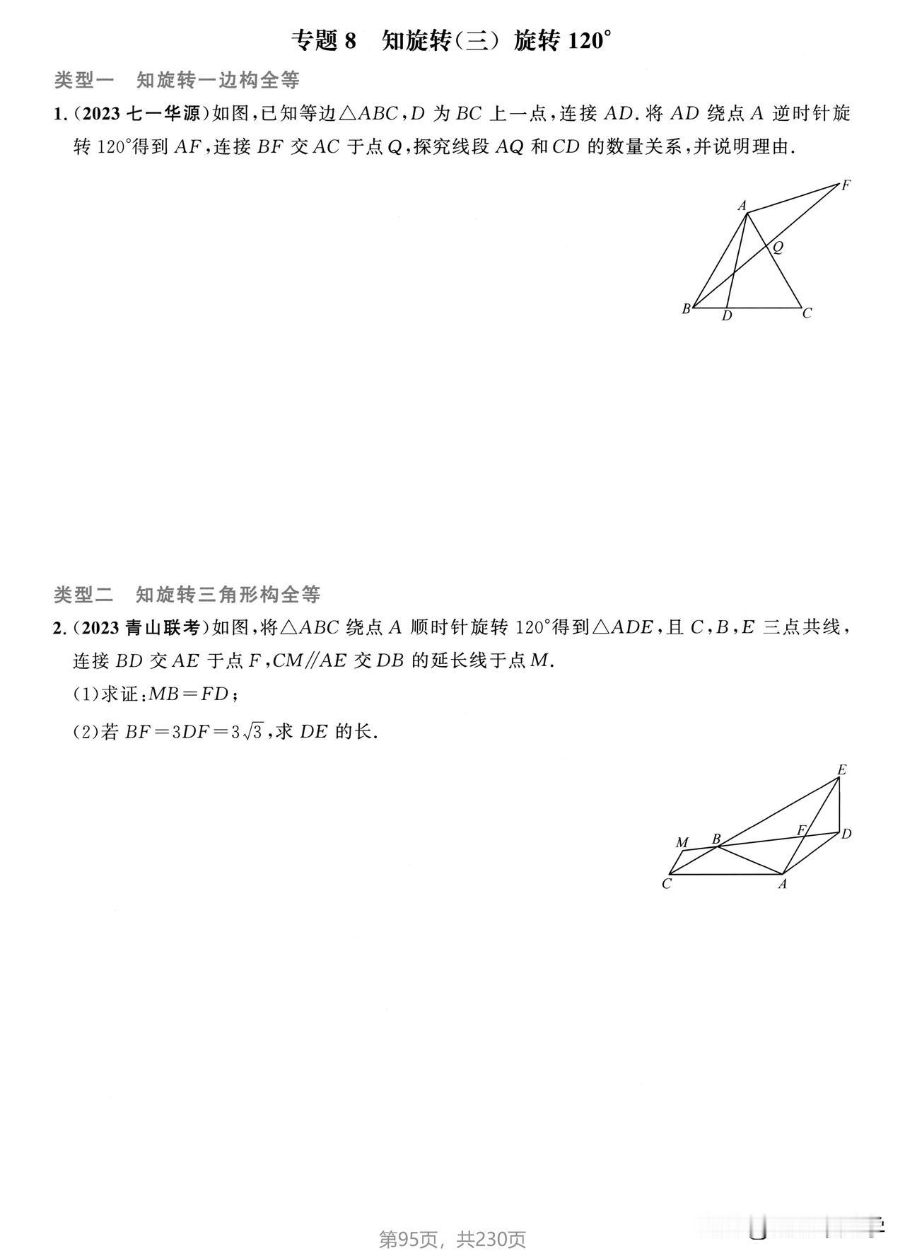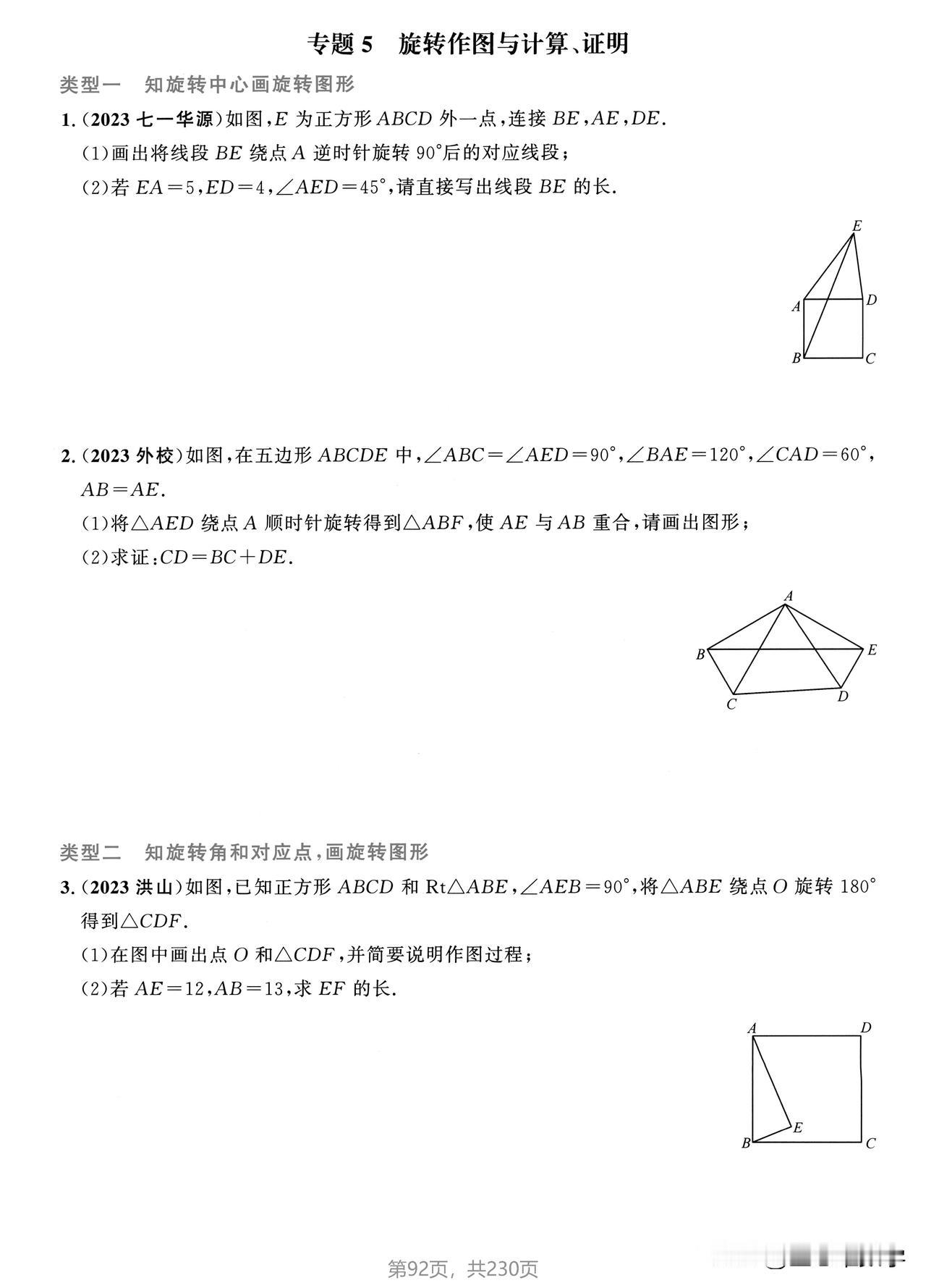 不得不说关于旋转的题型真的太丰富了!如果9年级同学这方面需要提高、可以通过这套专