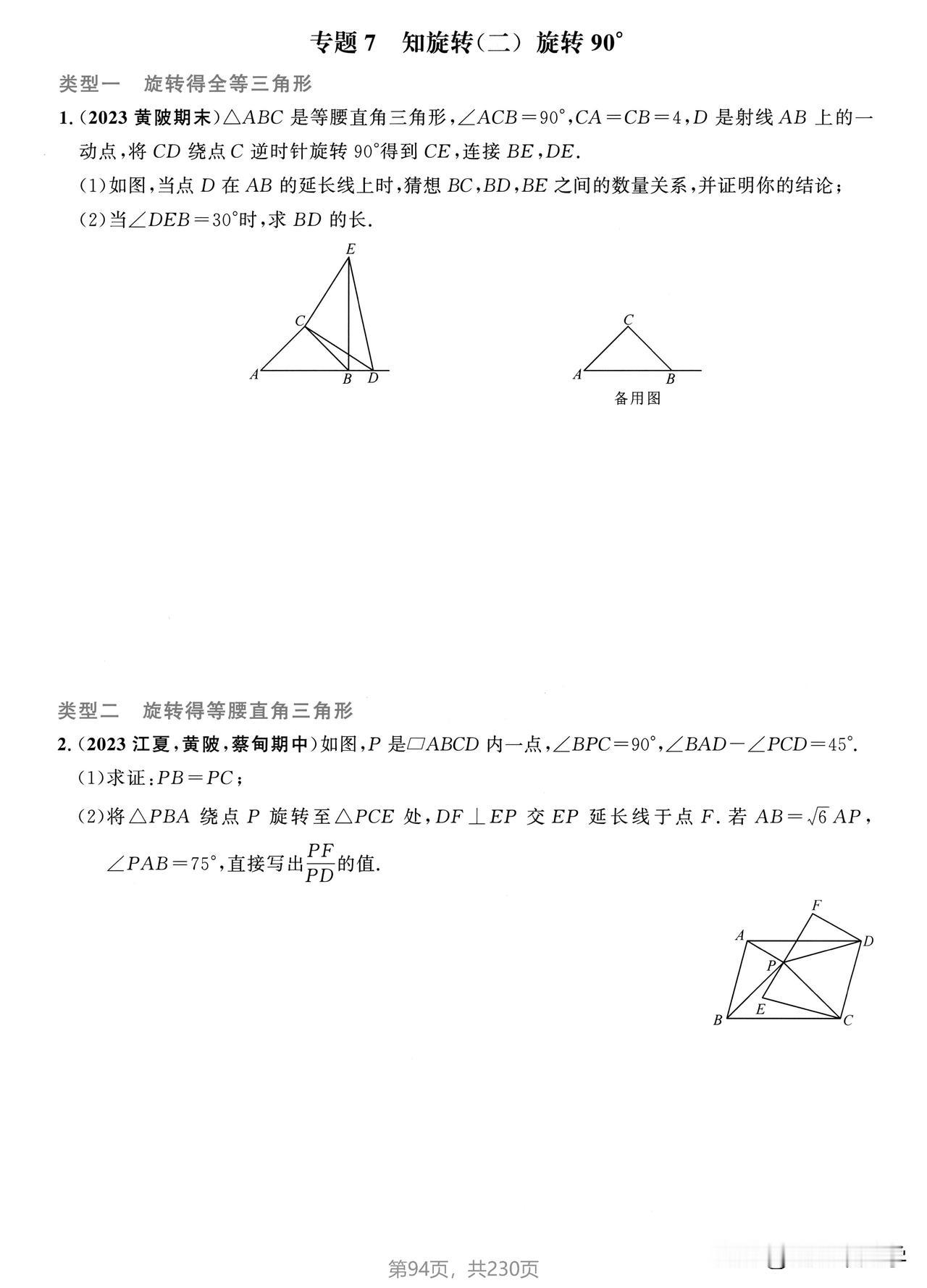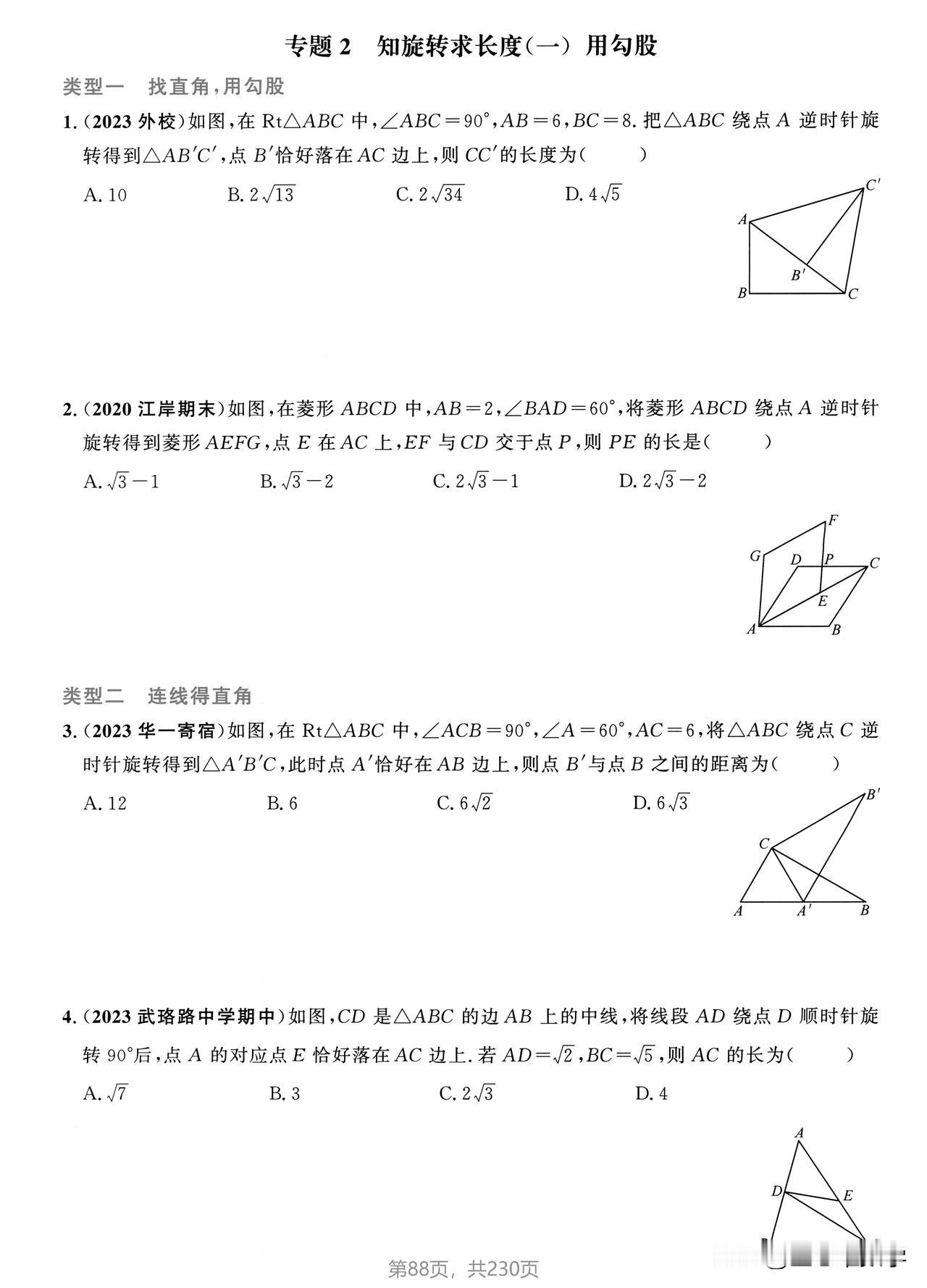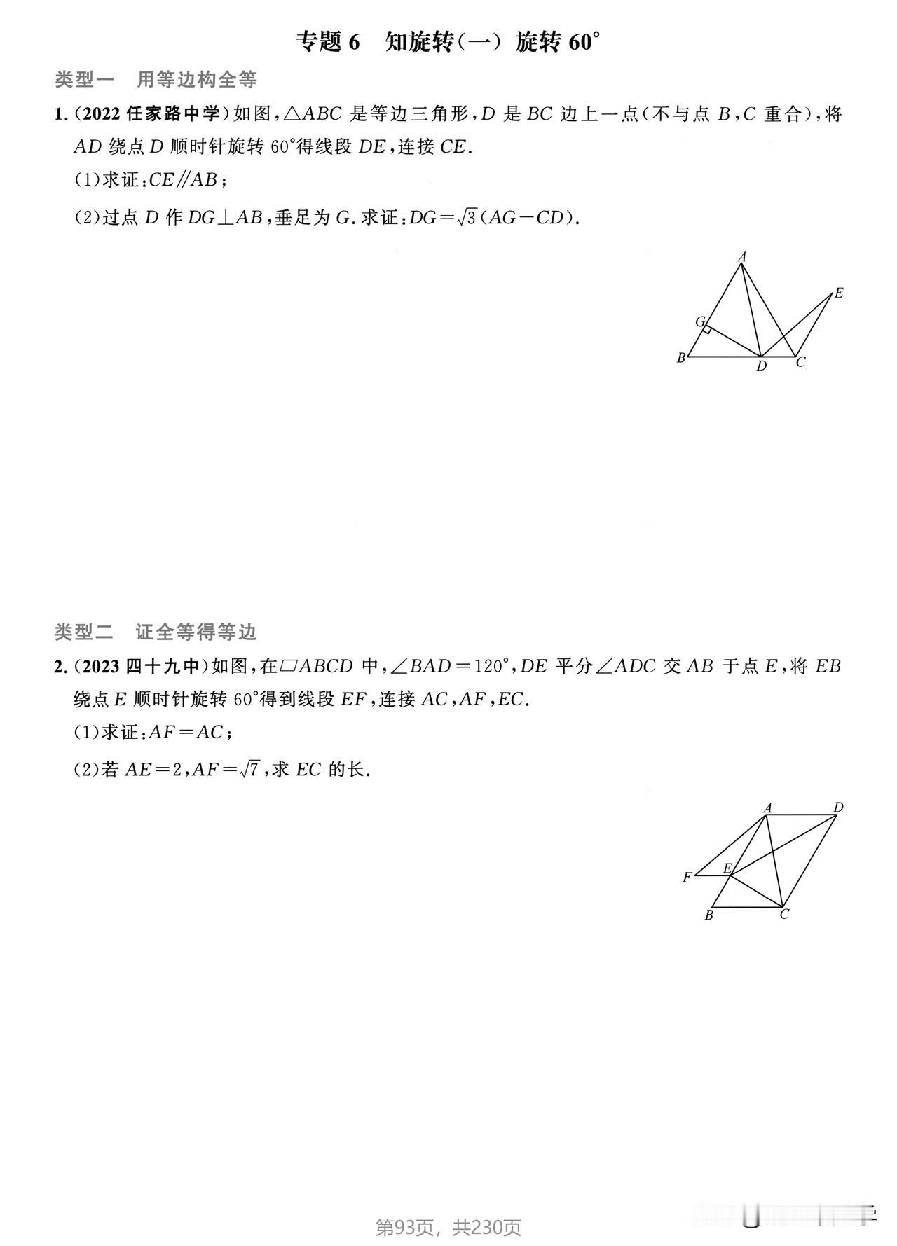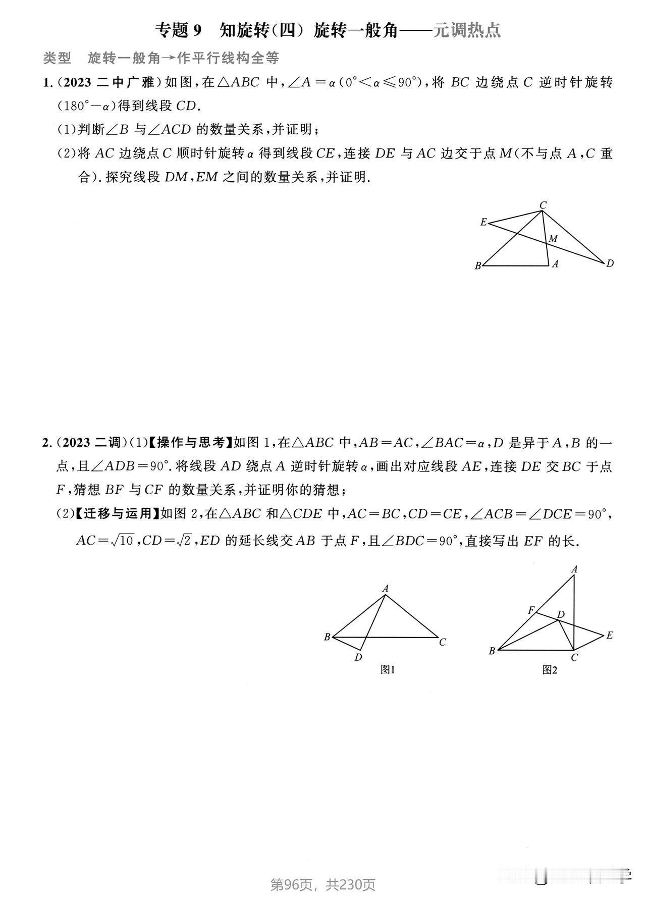 不得不说关于旋转的题型真的太丰富了!如果9年级同学这方面需要提高、可以通过这套专