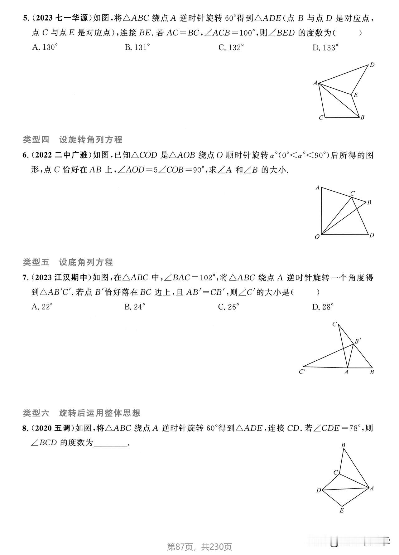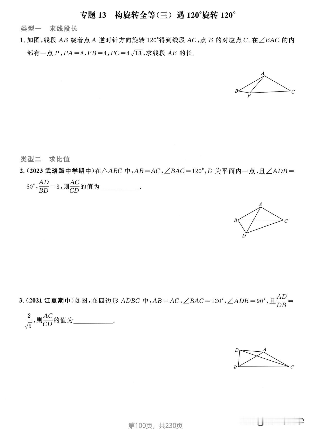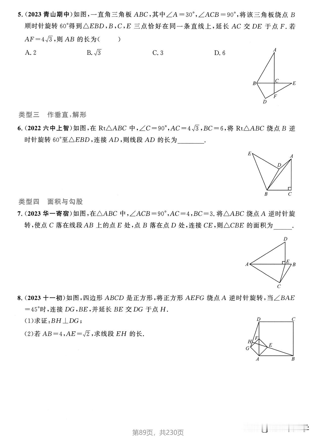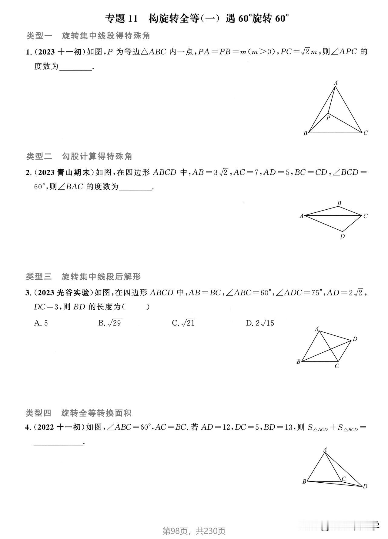 不得不说关于旋转的题型真的太丰富了!如果9年级同学这方面需要提高、可以通过这套专