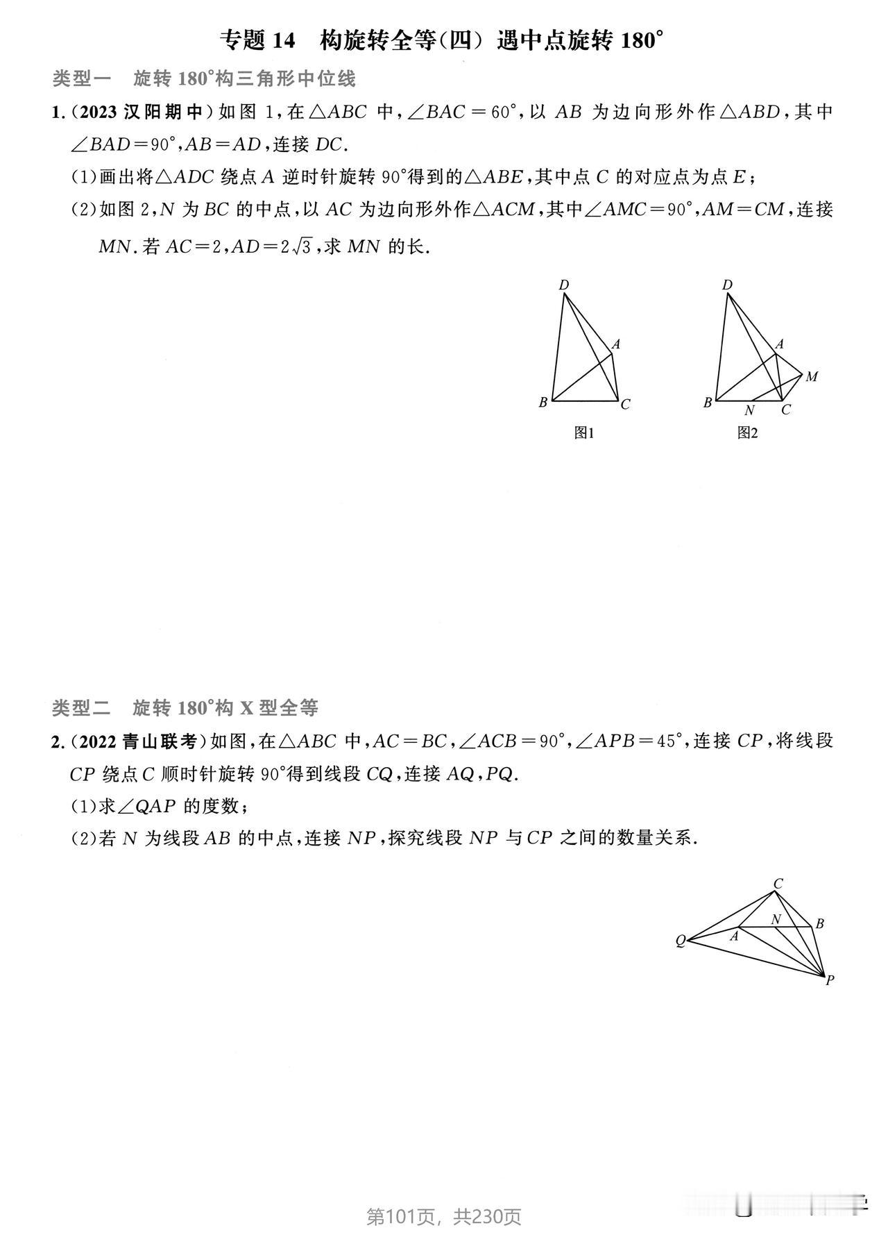 不得不说关于旋转的题型真的太丰富了!如果9年级同学这方面需要提高、可以通过这套专题来系统练习,太全面了!