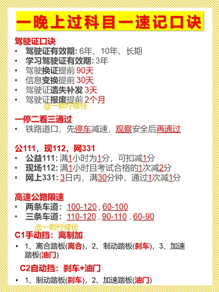 🌟 速记了科目一口诀后