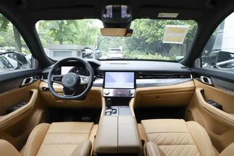 内饰方面:领克09的T字型中控台简洁干练,中间是一块半悬浮式触控屏,尺寸为12英寸,左侧还有一块12.3英寸的全液晶仪表,加上12.8英寸的HUD抬头显示,内饰科技感也比较到位。中控台配备了领克三辐式多功能方向盘,厚实的真皮材质的包裹,操控岛区域加入了小尺寸的换挡手柄,也将会带来了不一样的操控体验。内置了8295芯片组,操作流畅度接近旗舰手机,支持5G通讯网络和12GB运行内存。搭载了LYNK OS N 1.5.0车机系统,升级优化包含系统响应速度、地图可视化车道引导、巡航红绿灯倒计时显示、仪表导航投屏界面、QQ音乐等70项内容。而且领克09也算学习了沃尔沃XC90的精髓,两者也像换壳车型,因此内饰用料比较环保,新车异味非常少,对小孩、孕妇而言无疑是好事。座椅包裹感到位,中间低两侧更高,即便个子高身材胖,坐上去也能很好的承托性。车内大面积棕色高档真皮材质的铺陈,还有黑色麂皮绒材质的交替混搭,就连容易忽略的车顶棚和地毯也都采用了植绒材质,配备的棕色真皮Nappa座椅,坐垫和靠背都加入了防滑的浮雕纹理,仅从色调搭配和奢华的用料,就营造出温馨、高档的氛围感。而且每个座椅都是根据人体工程学设计,加宽加厚的侧翼,对颈、肩、腰、腿都拥有更好的支撑性,还带有腰部支撑、前后排座椅加热/通风/按摩的功能,真不愧是“移动的大沙发”。无论5座版还是7座版车型,领克09燃油版车型都是提供前排座椅通风加热按摩,以及后排座椅加热功能。7座车型支持第二排座椅前后位置调节,并且带有第三排座椅的儿童安全座椅接口。而插混版车型方面则提供6座和7座车型可选,也就是说6座版是目前领克09 EM-P的专享,从整体座椅配置方面,6座版车型第二排座椅配置也更丰富,配置接近的领克09 EM-P 7座 Pro版车型指导价为31.78万,而6座 Halo版车型指导价为32.78万元,价格差异1万元,6座版车型升级第二排座椅的通风加热按摩以及第三排座椅的电动调节功能。同时领克09 EM-P的6座版车型,第二排还支持左右位置调节,可以提供进出第三排的潮汐通道,便利性进一步提升。