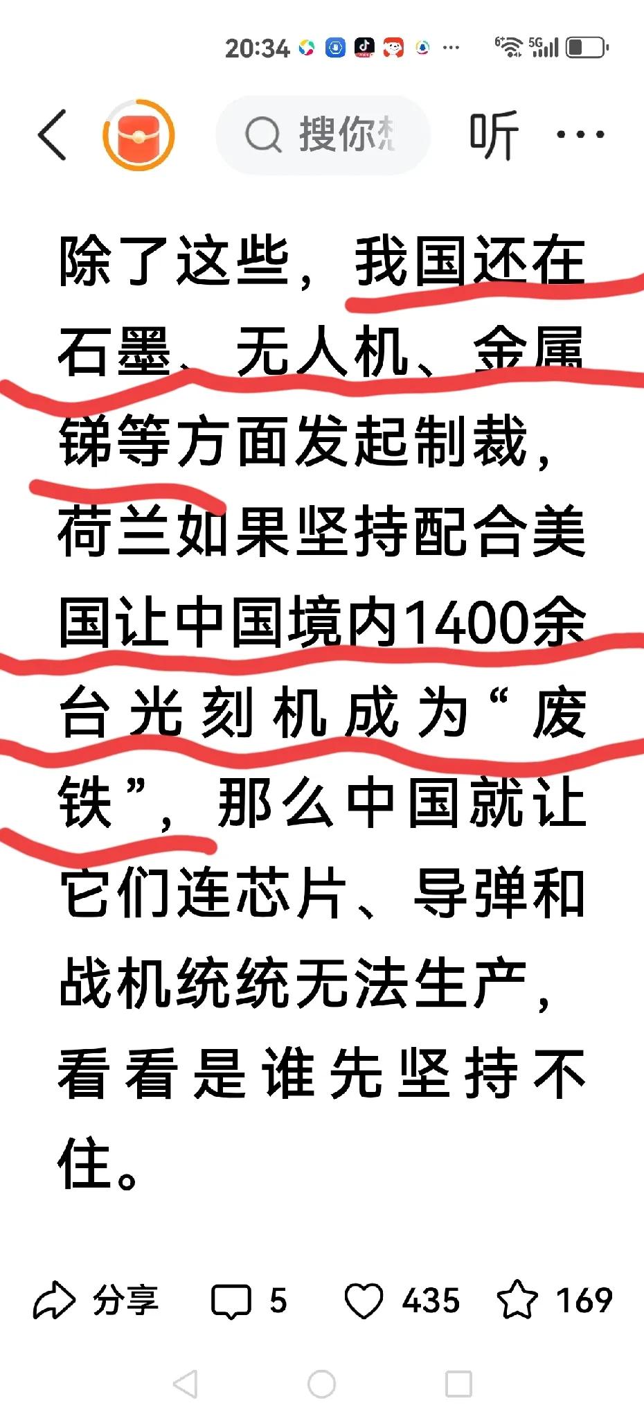 【光刻机,中美决战在即?】 紧急呼叫张维为。 荷兰终于屈服于美国淫威,所谓“国家安全”,不但禁止出口我国两款中低端光刻机。 还竟然停止维护,维修中低端光刻机,想让我们已经购买1400台中低端光刻机成为“废铁”。 高端早就停止,中低端也开始了,我们即将打响保卫战,把石墨,无人机,金属锑等反制裁。严禁出口美国以及西方。 项大师,张维为不知是否自信,或者高枕无忧?