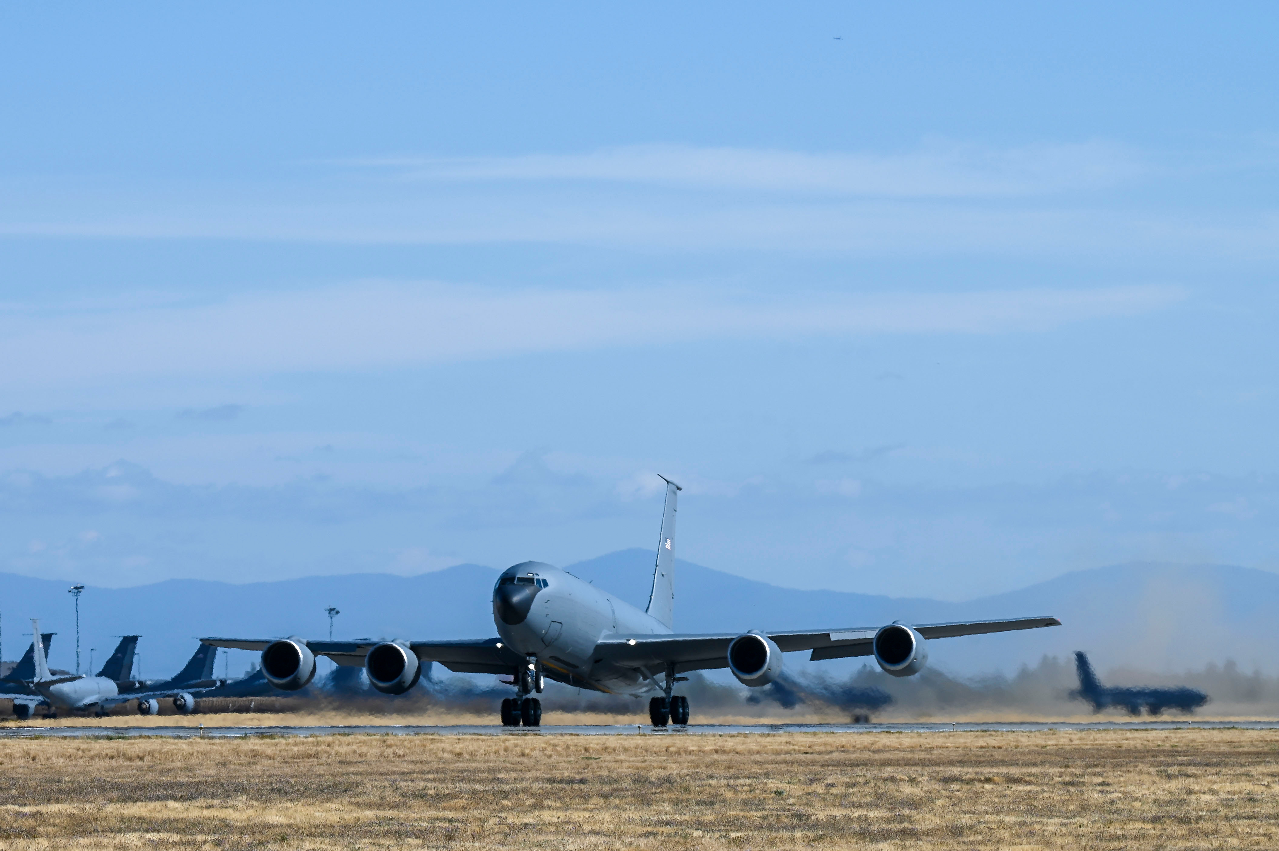 2024 年 9 月 13 日,华盛顿费尔柴尔德空军基地,隶属于第 92 空中加油联队的 KC-135 “泰坦怒火 ”24-7 演习中起飞。KC-135 进行了最小间隔起飞,这是航空中使用的一种关键程序,可确保飞机安全起飞并爬升到指定高度,而不会干扰其他飞机的飞行路线。泰坦之怒 "是一项经常性的综合力量演习,确保费尔柴尔德场站的飞行员训练有素,随时准备提供快速全球机动能力,以支持战略威慑和国防战略。这次演习充分展示了第 92 ARW 部队如何在日益复杂的安全环境中以可靠的力量参与、部署和准备保证、威慑和防御。#烽火问鼎计划#