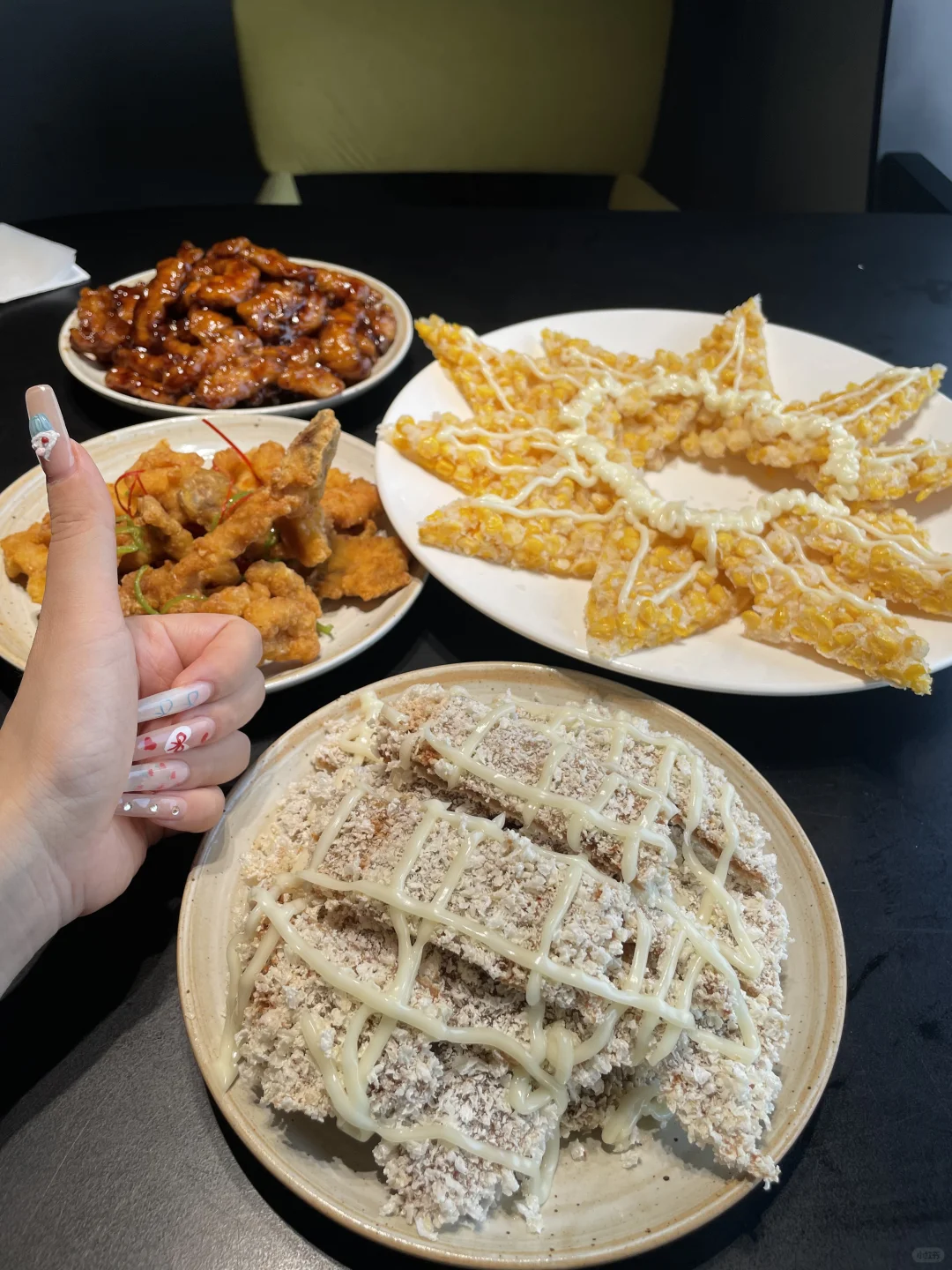 沙律牛排,椒盐排条,糖醋排条,玉米烙