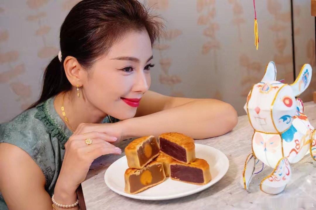 刘涛中秋节晒照,桌上摆着蛋黄和豆沙月饼,看来她喜欢这两个馅啊