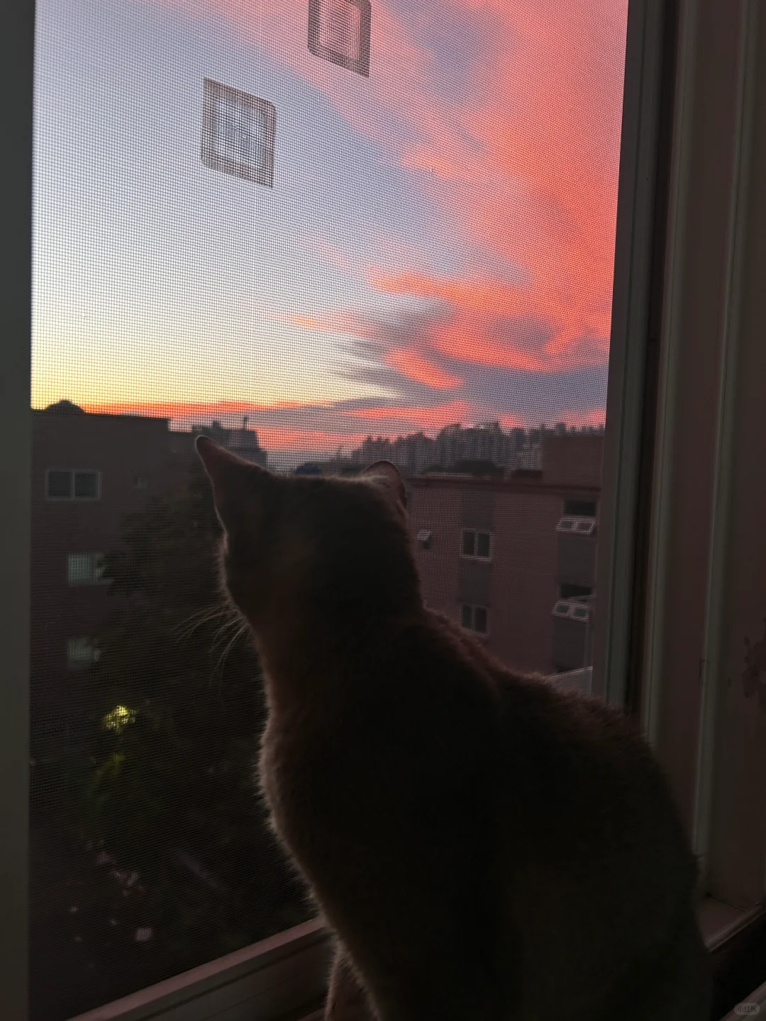 幸福具像化,每天都陪小猫看日落。 来这个房子每天最开心的事就是在家里也可以晒一下午的太阳,然后等太阳落山,天空变成红色,橙色,粉色,淡蓝色,深蓝色,我的心也一起降落,落到安宁的闪着星星的夜里。