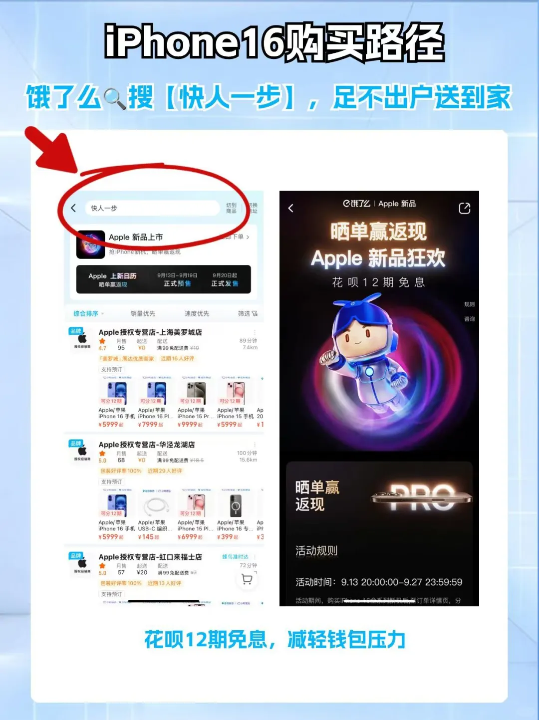 动动手指,iPhone16就能足不出户送到家!饿了么还是太全面了!