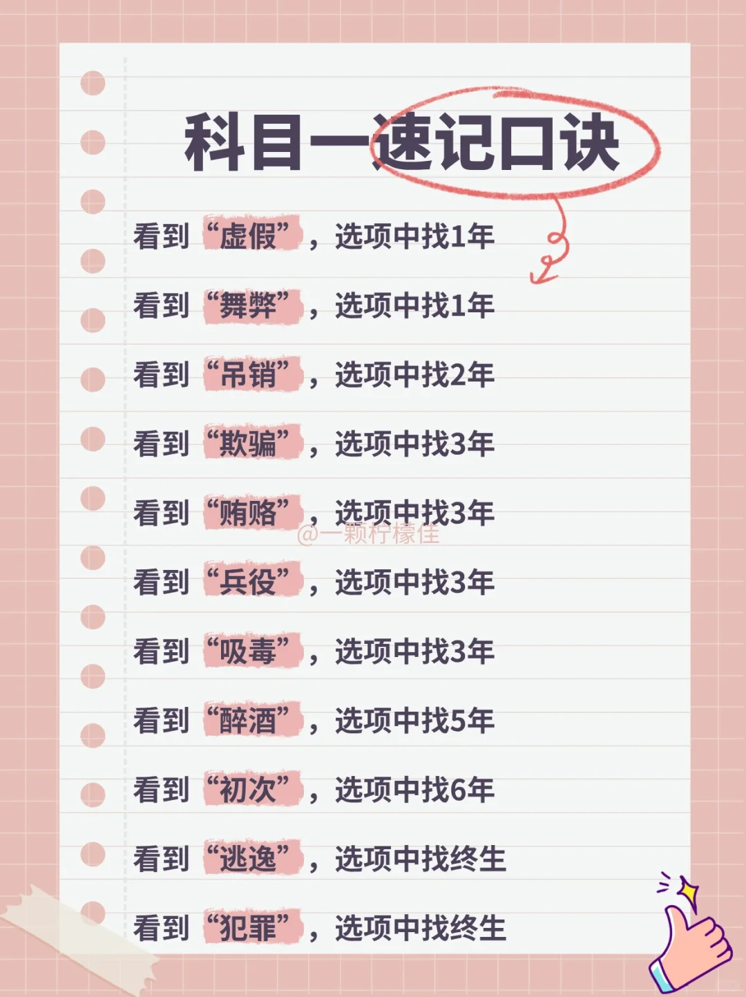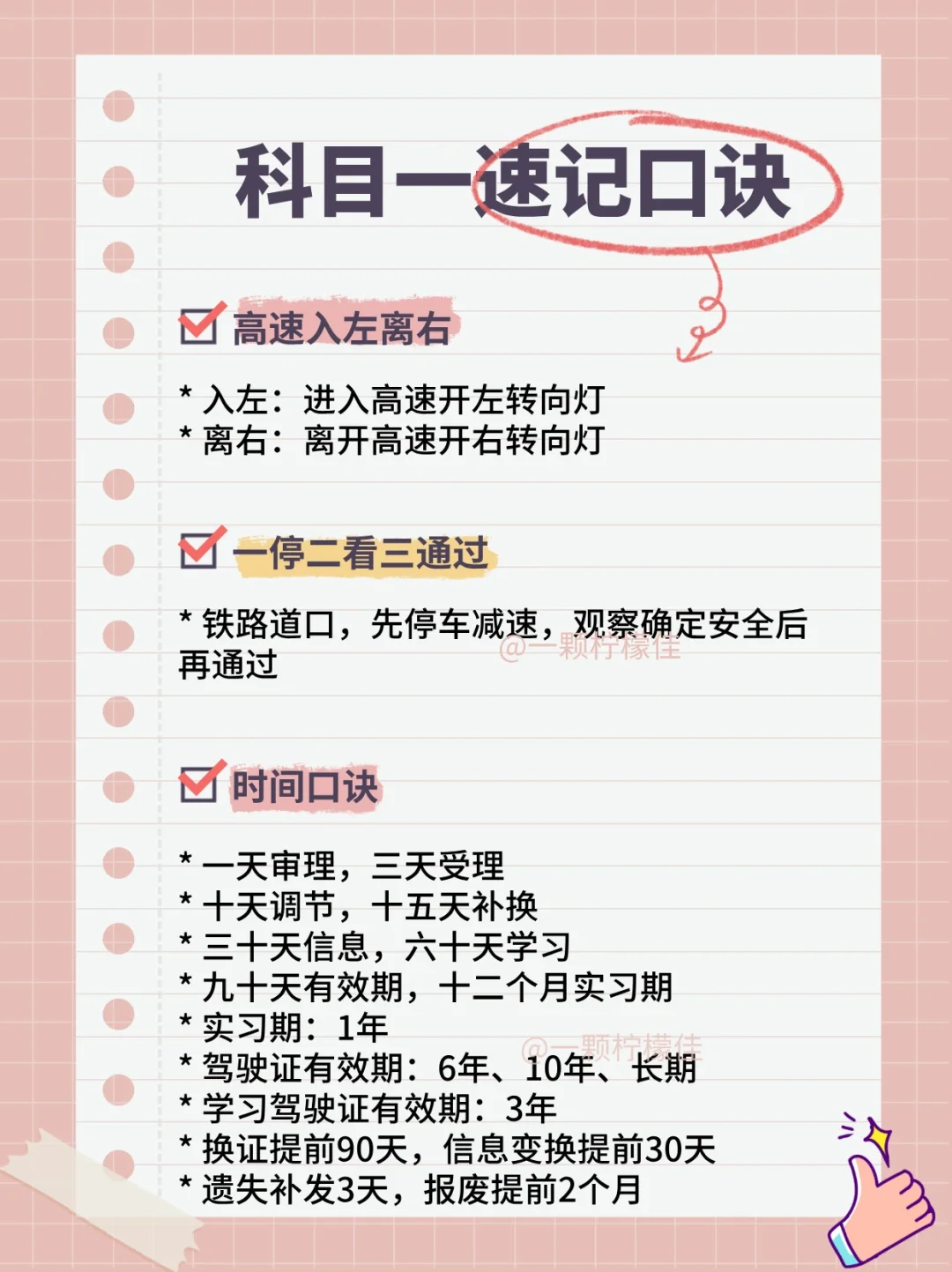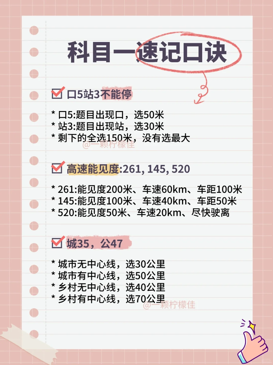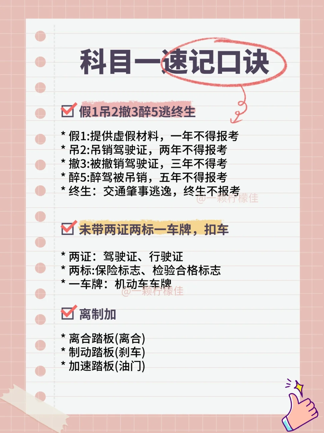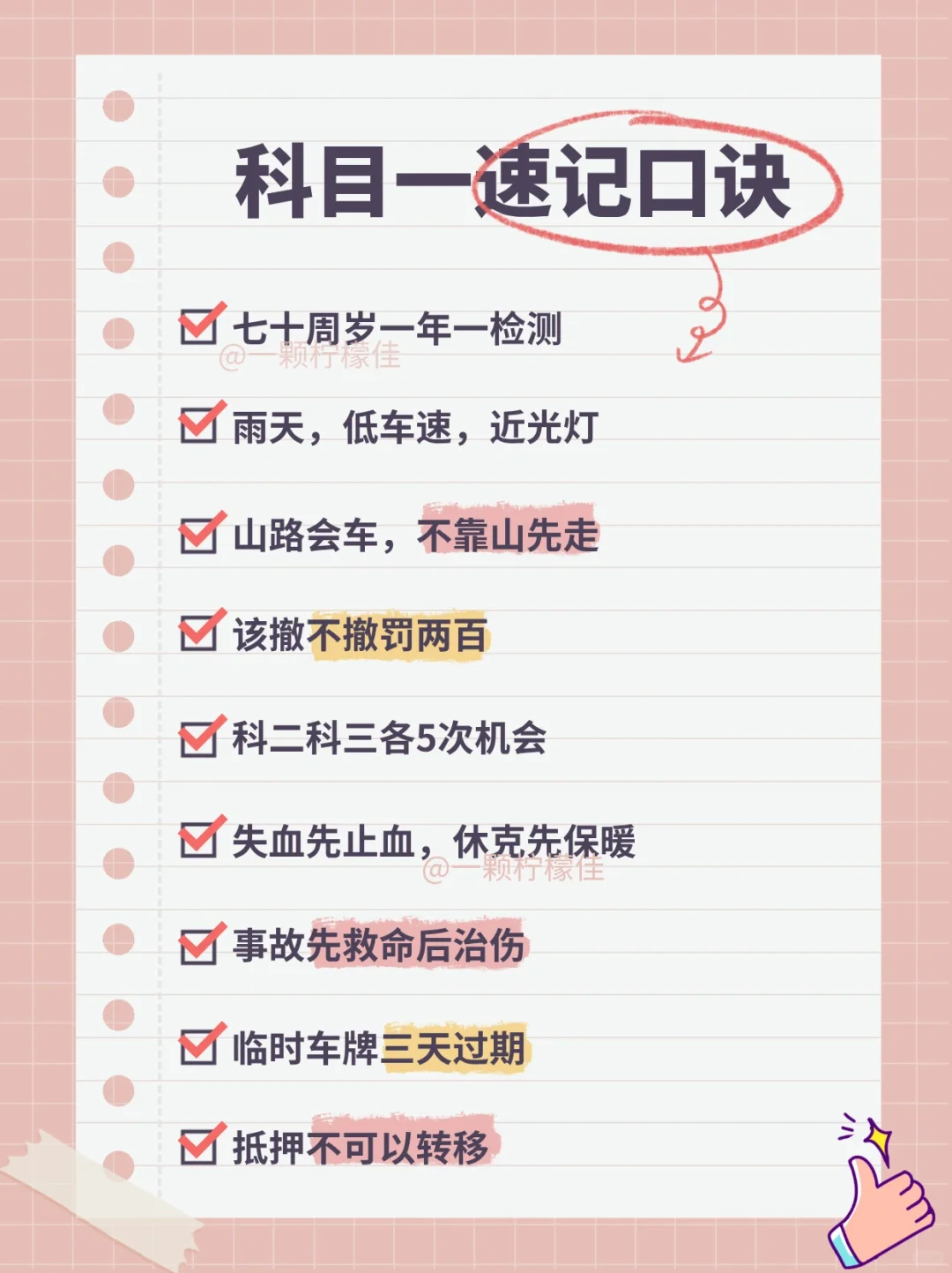 生活需要分享欲 宝子们‼️👋🏼 以过来人的经验告诉大家,科目一千万不要抱侥幸心理!💓 身边就有不少随便看点技巧就去考试的,结果只有60-70分,浪费时间又影响心态😵💫 - 实在懒得刷题,也至少要用1-2天的时间背背科目一速记口诀,多刷刷模拟题,多做几次模拟考试,还可以倍速看看肖肖🌺两小时视频,视频会比文字生动好记哦,另外一定要保持好心态,这样就没问题啦~💯💯💯 - 祝宝子们科目一都一把过哦~~~🍻🍻🍻