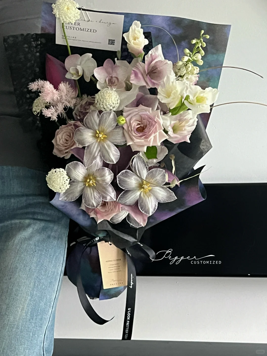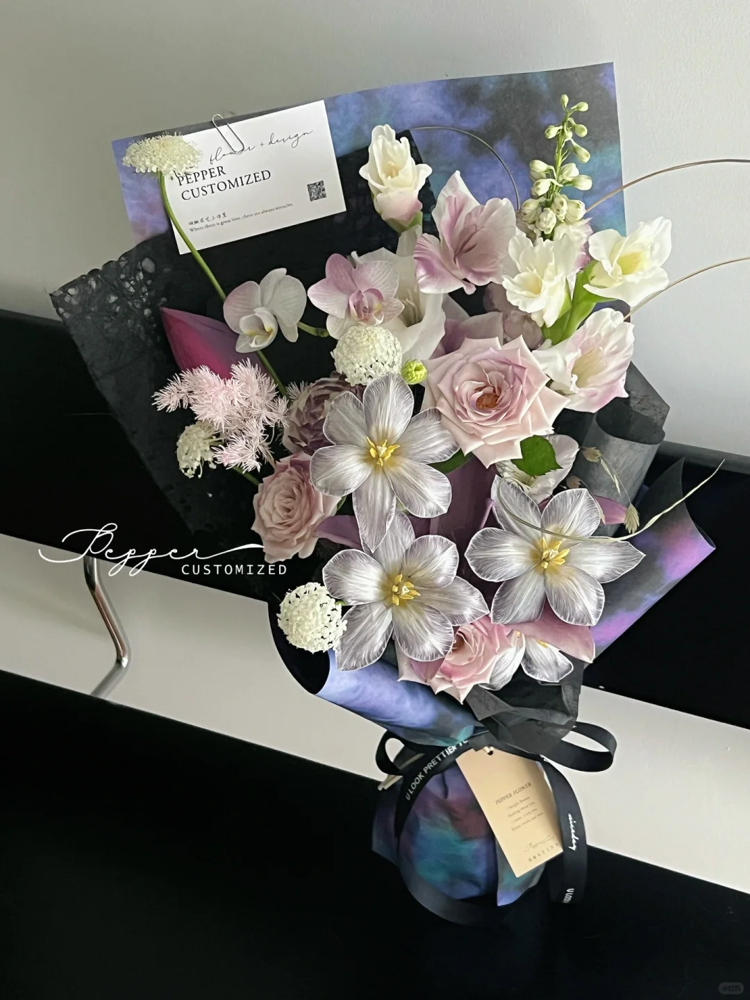 乌梅子酱 上面飞蝴蝶啦~ 纪念日花束 生日礼物花束 小众花束 领证手捧花 送女友闺蜜花束 暗紫色系花束 设计款花束