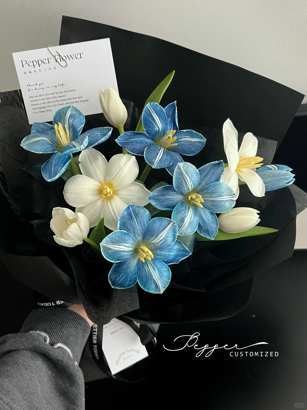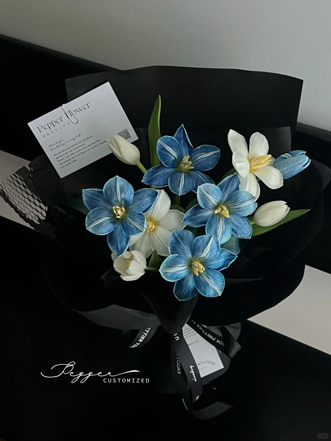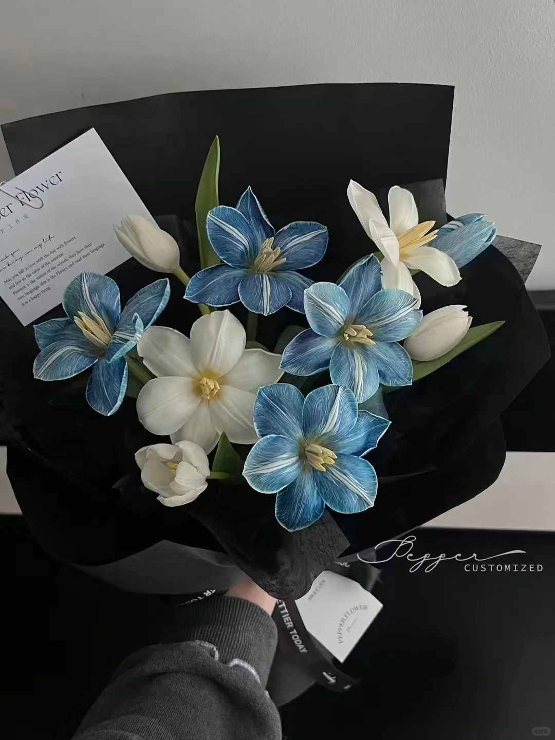 一篇对比图 大家按需要入手~ 进口郁金香花束 生日礼物花束 情人节花束礼物 小众设计感花 南京花店 蓝色系蓝白色系花束