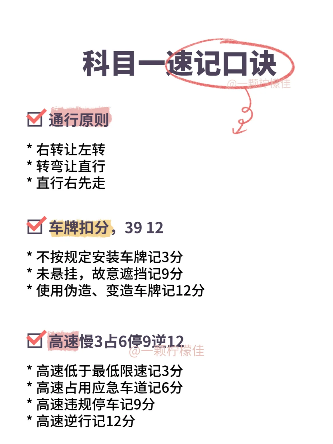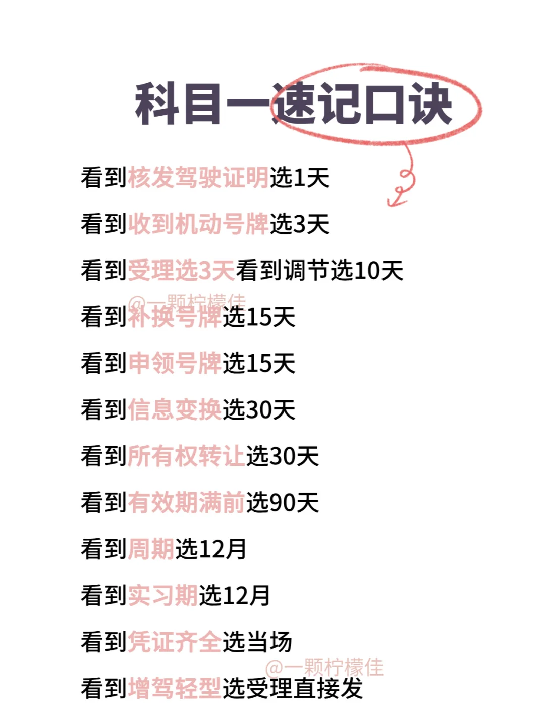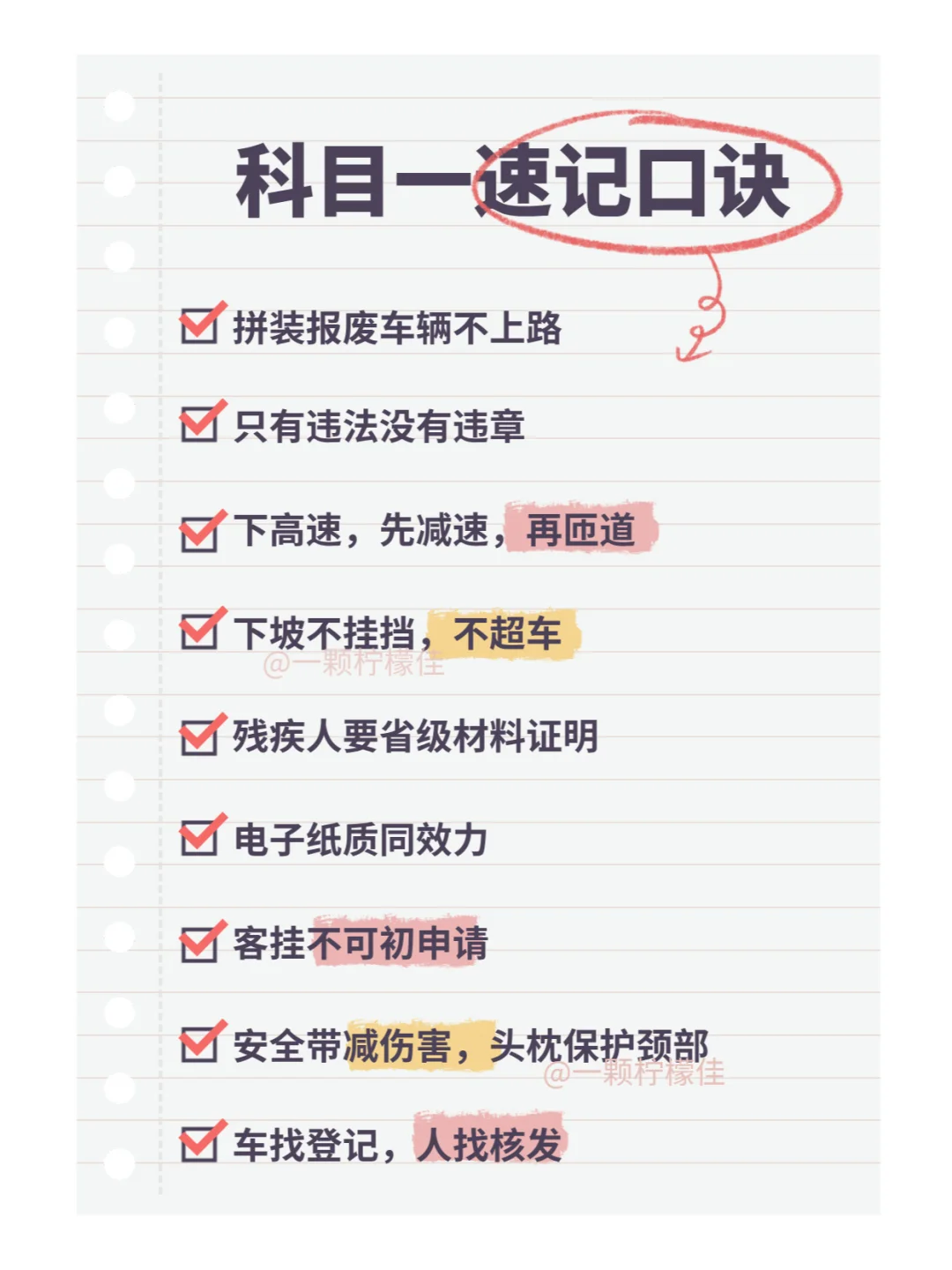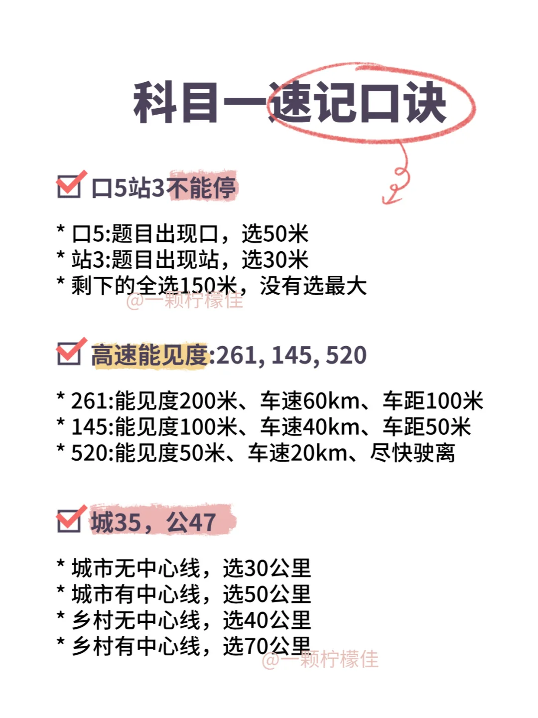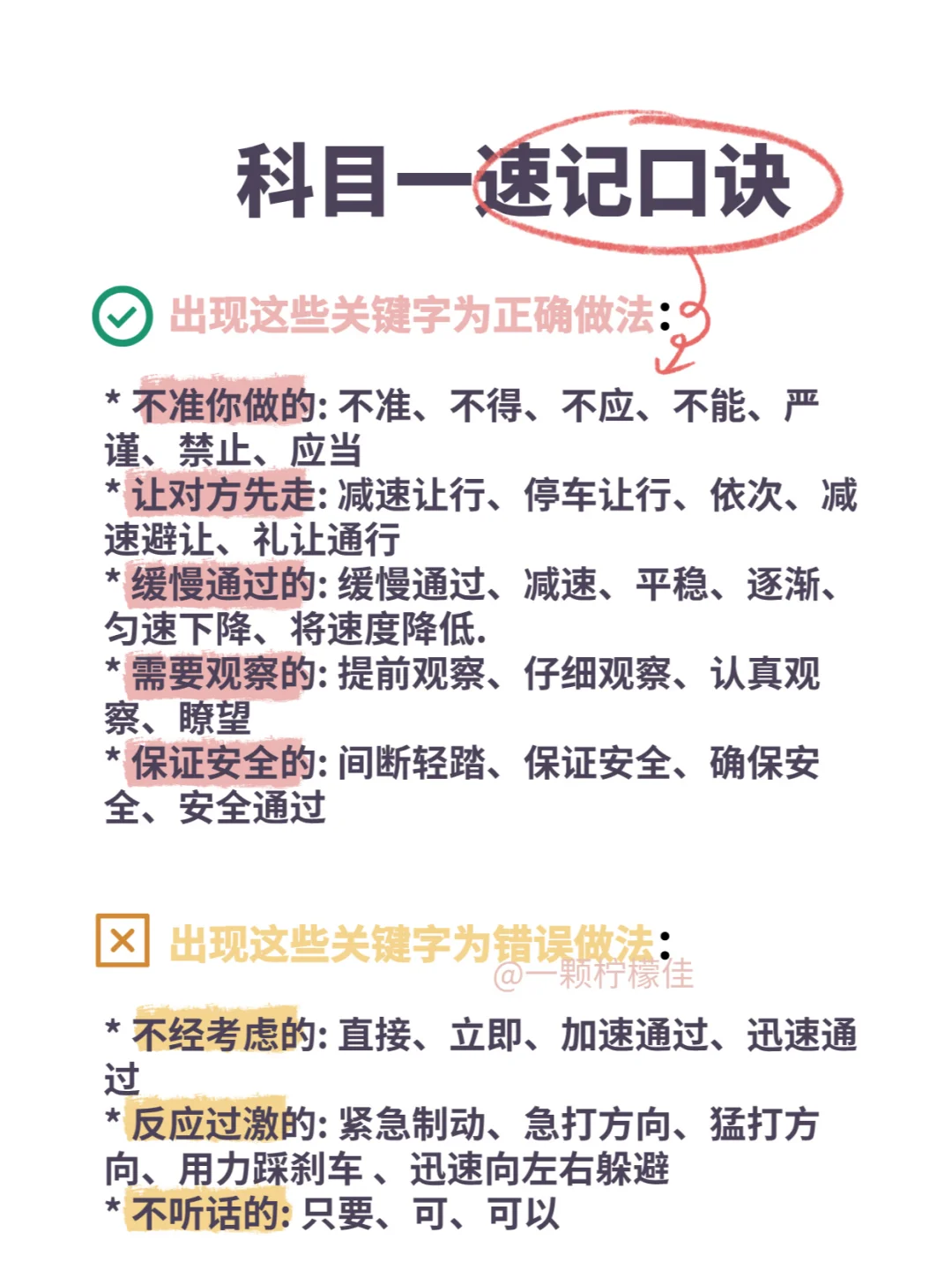 科目一90%的懒人速记口诀,看这篇就够了❗