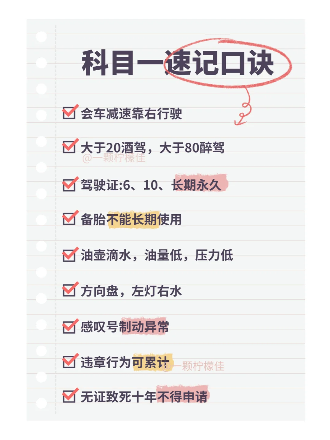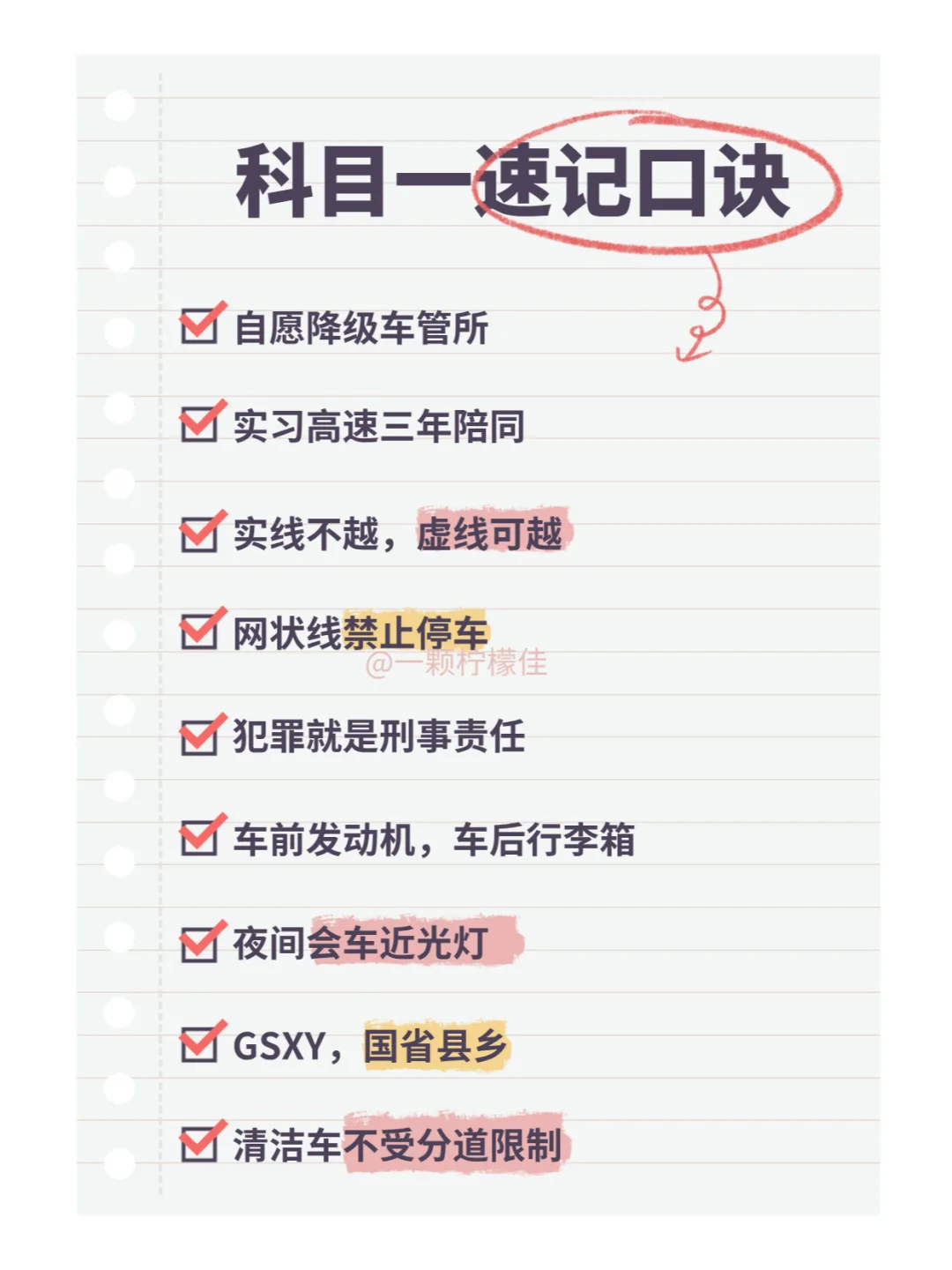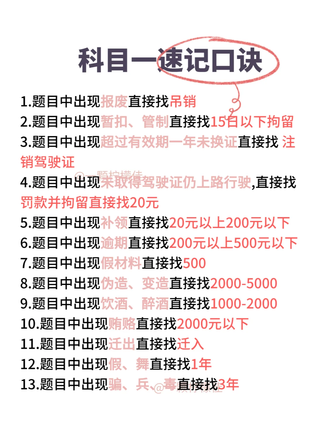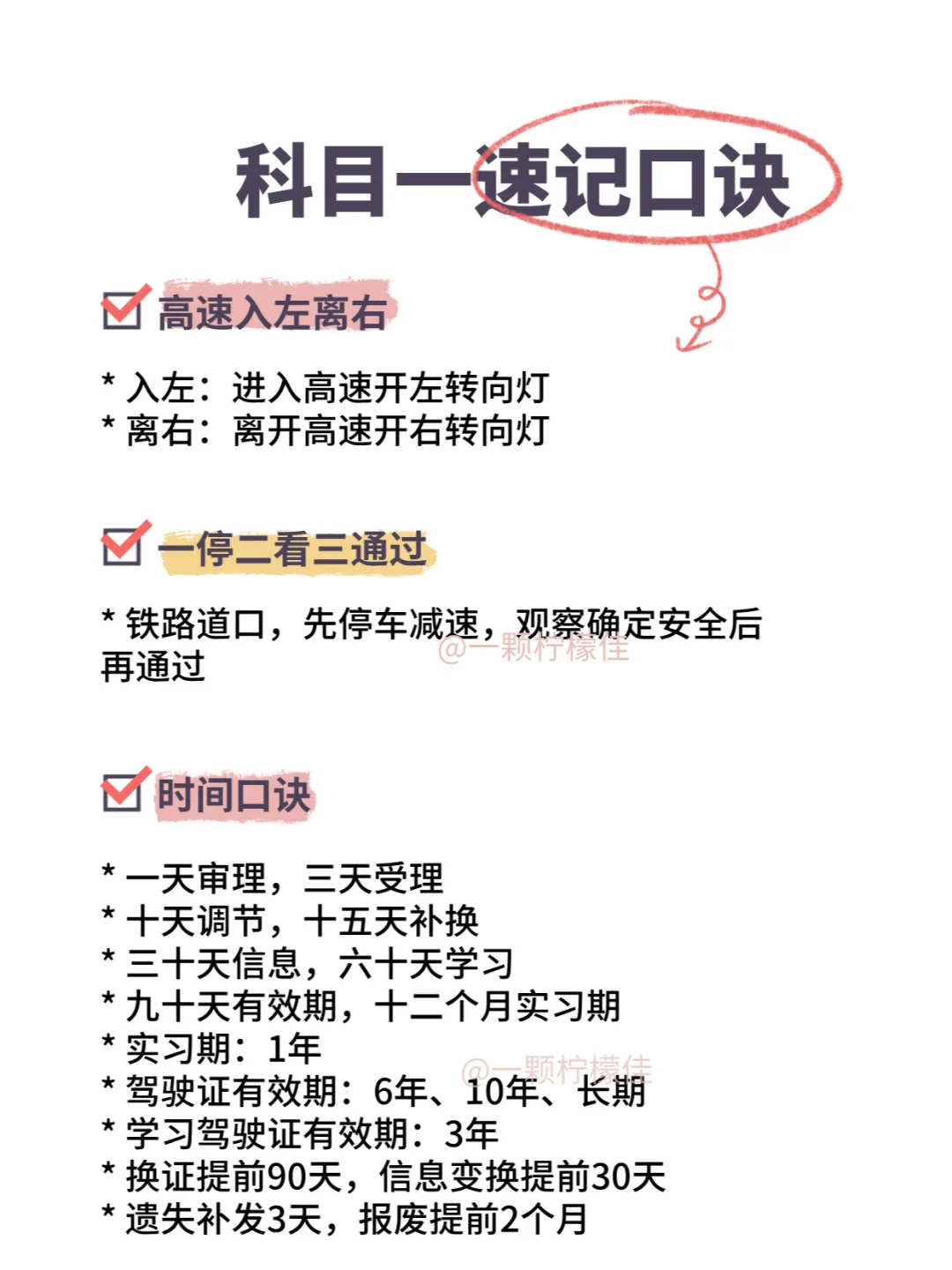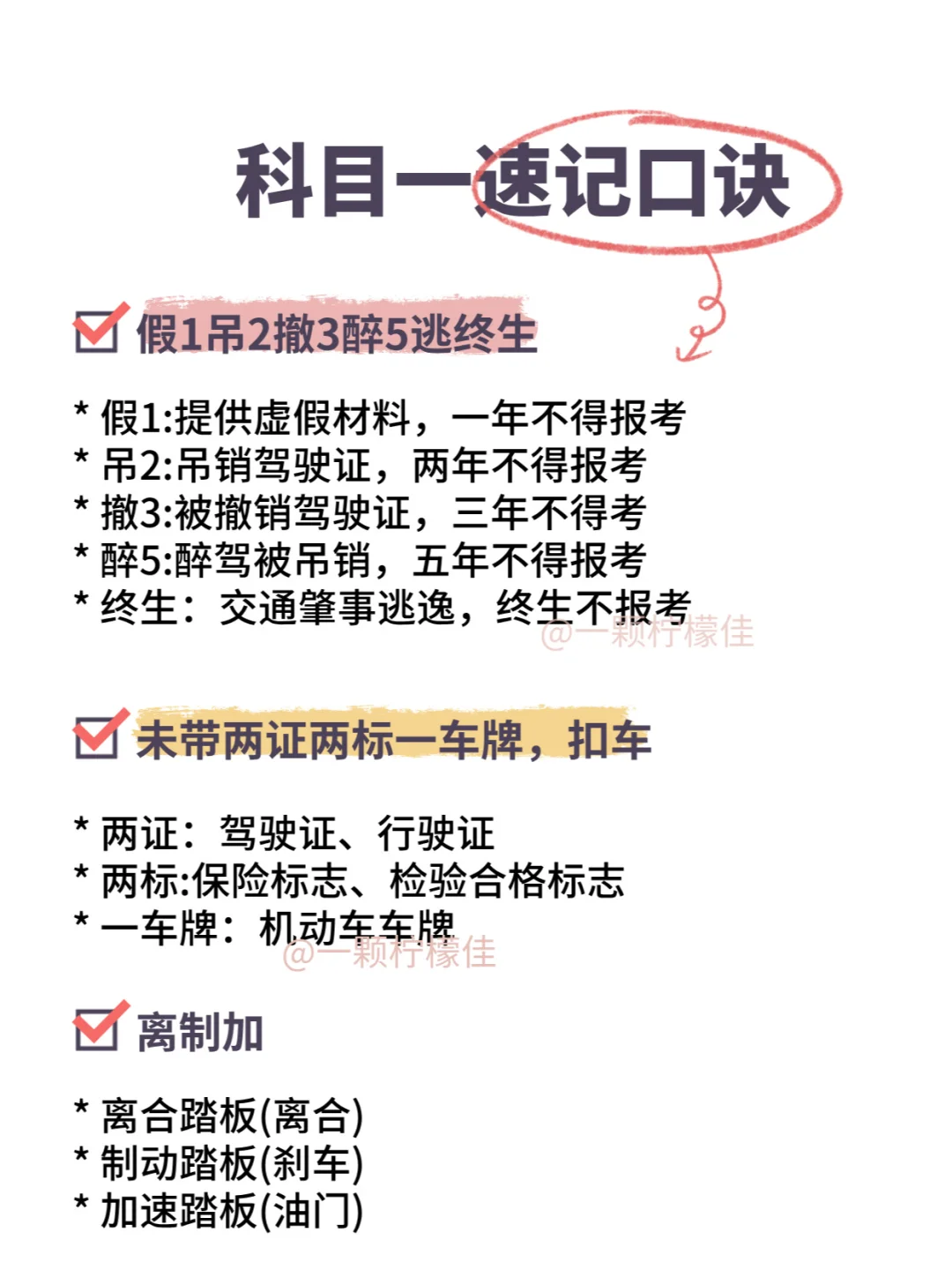 科目一90%的懒人速记口诀,看这篇就够了❗