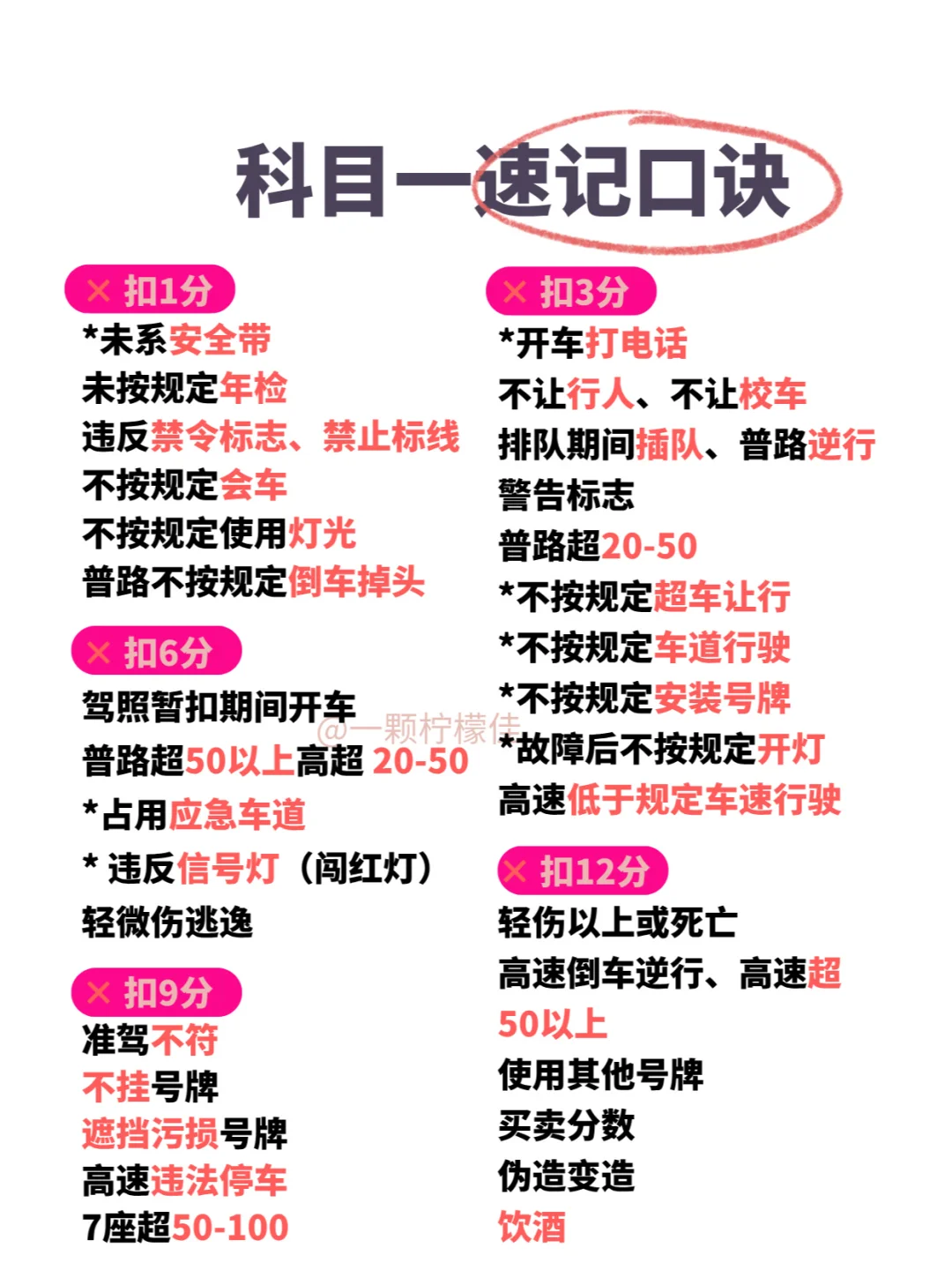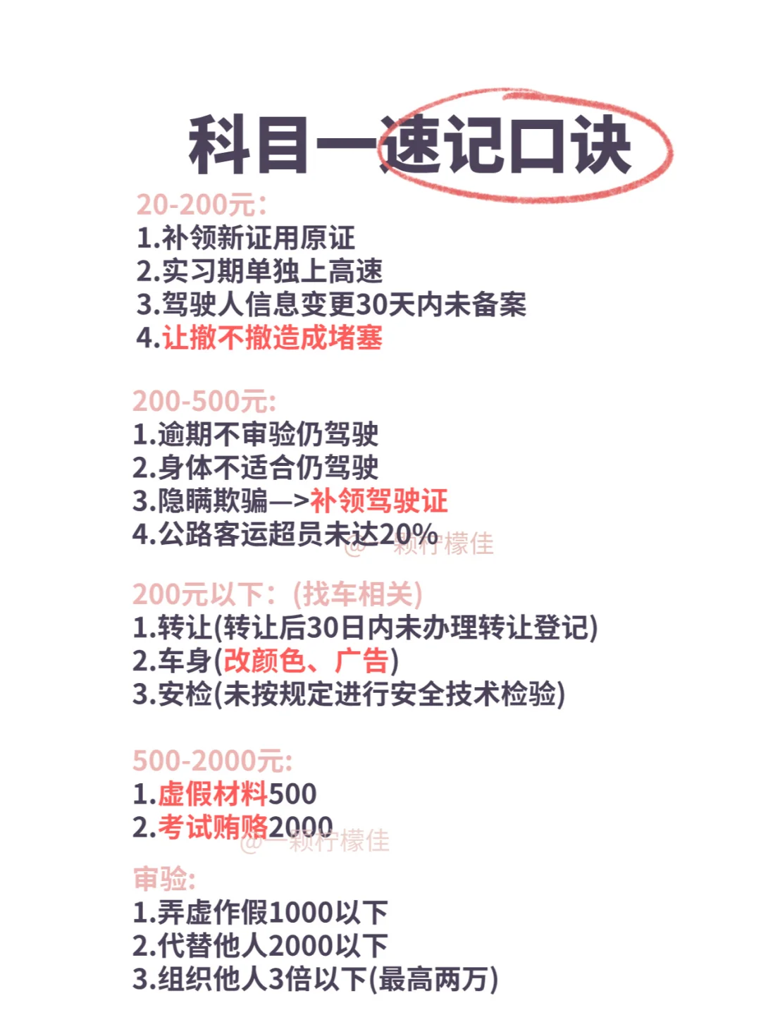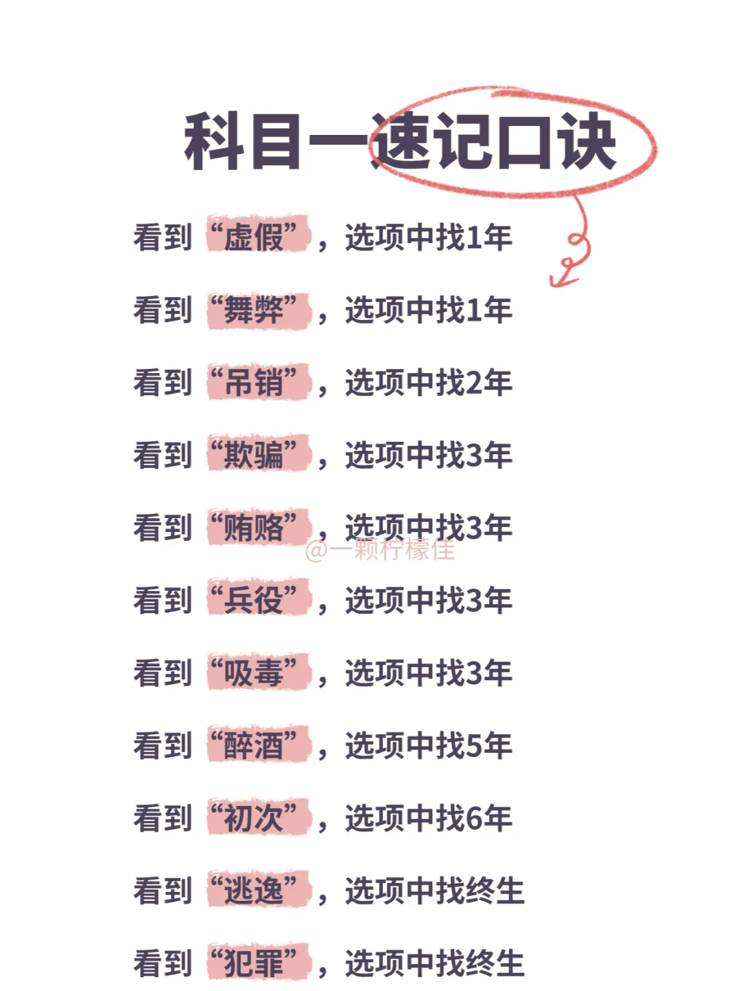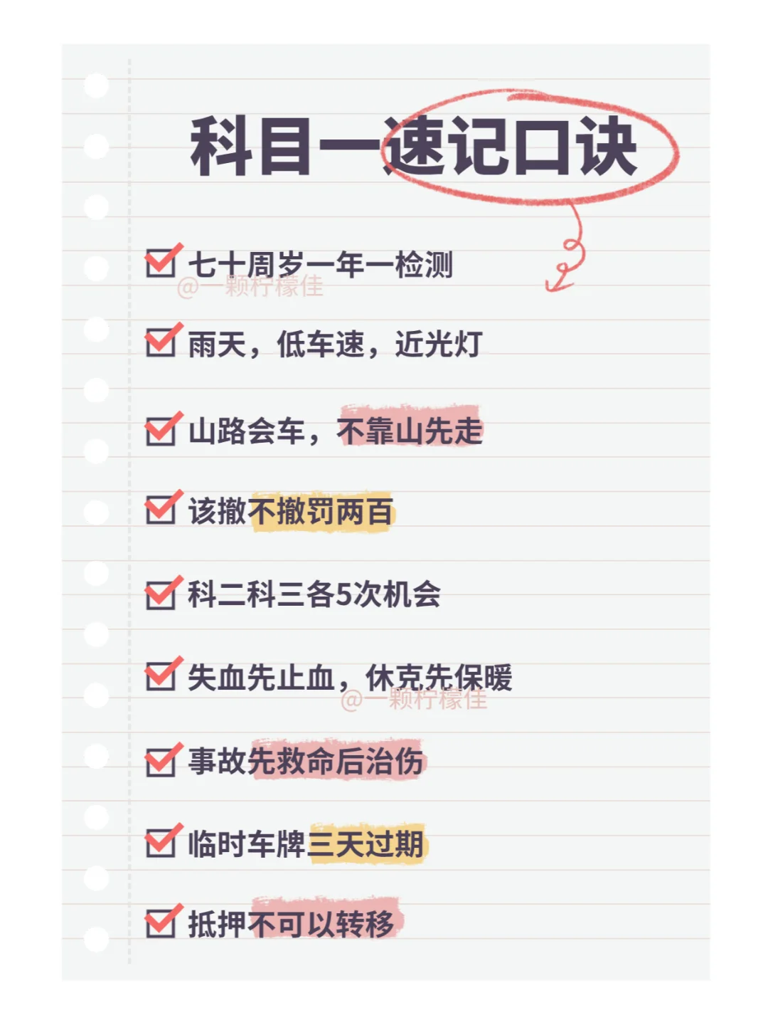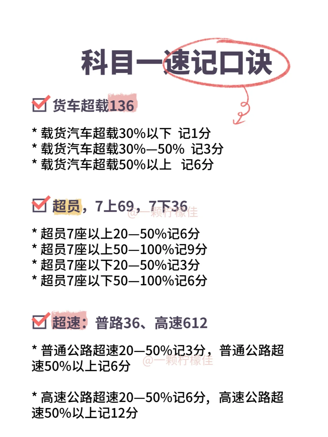 科目一90%的懒人速记口诀,看这篇就够了❗