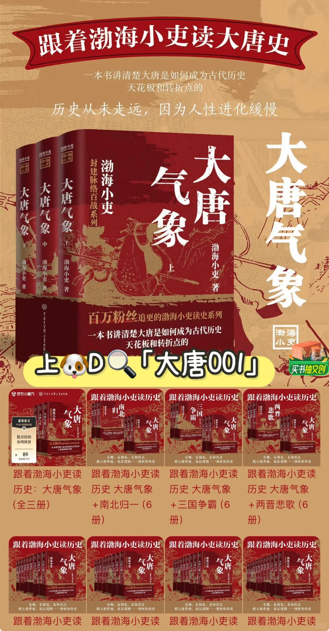 这套书是百万UP主渤海小吏的最新力作,详细讲述了从随帝国开始崩塌、隋唐鼎革、玄武门之变、贞观之治、武周代唐、开元盛世至安史之乱结束的一百六十多年的一段历史。