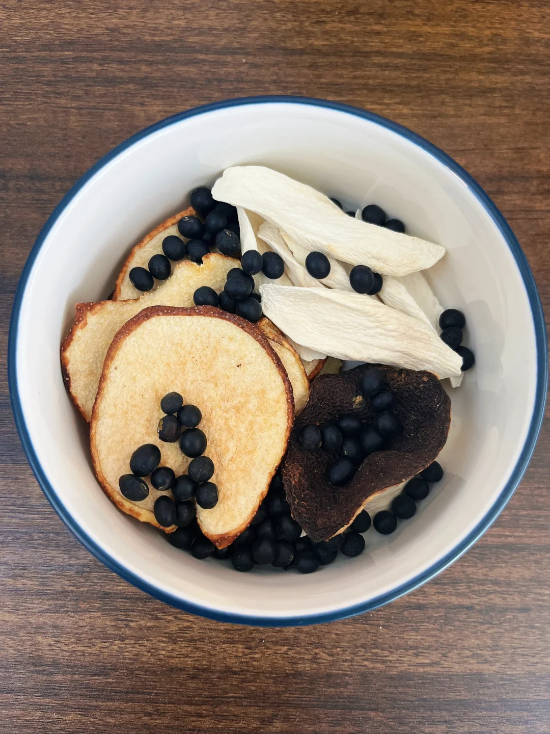 6⃣干干 ke,怀山药干+雪梨干+百合煮水;