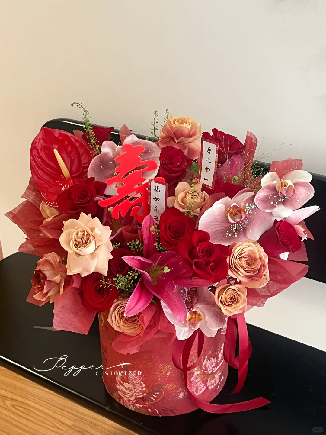 古稀重新,欢乐远长~ 长辈花束礼物 纪念日花束 送妈妈花束礼物 情人节花束 抱抱桶花束 祝寿花束