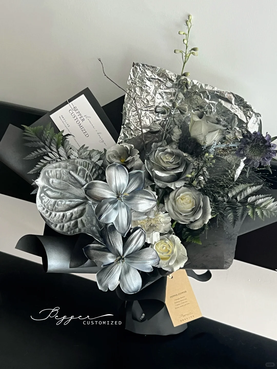 酷花配酷盖!🆒银黑色七夕花束|南京花店