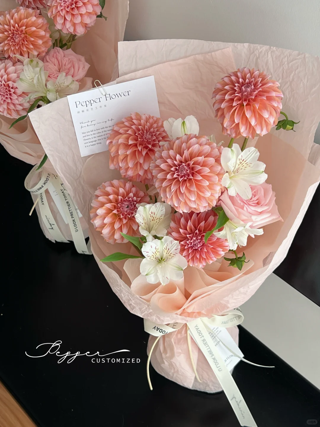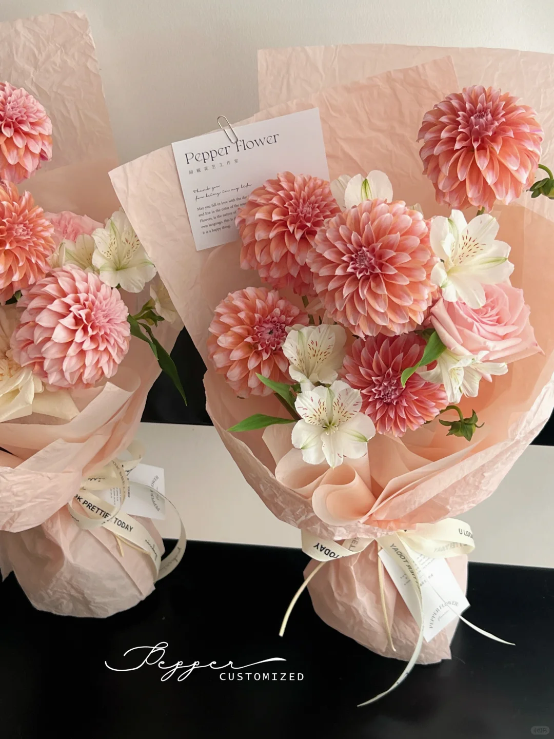 怕热的我只能呆在空调房 🫠 都想去花的冷柜挤一挤🧊 奶油桃子花束 纪念日礼物花束 七夕鲜花 粉色系花束 送女友闺蜜礼物花束 复古系礼物花束