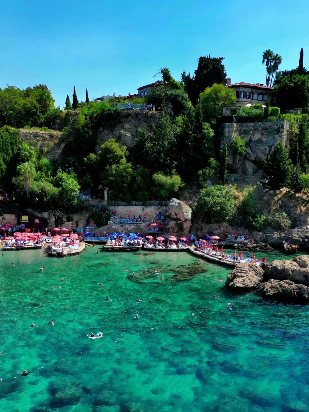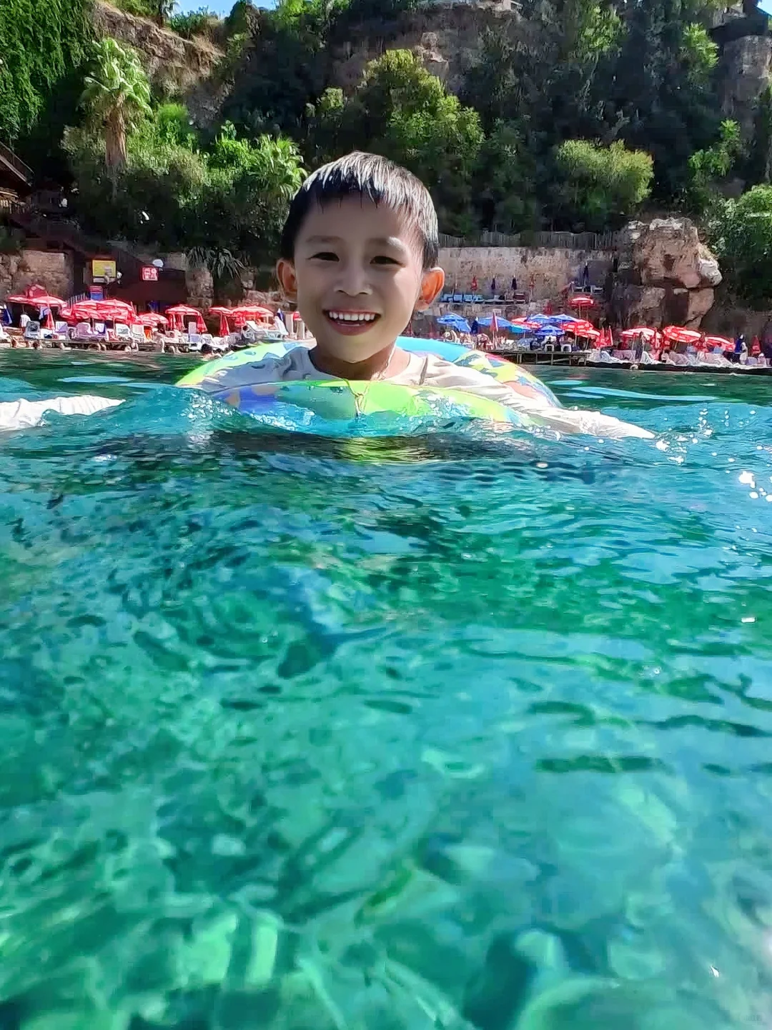 🎈计划来土耳其安塔利亚玩的家人们,强烈推荐这个海滩,就在古城边上的悬崖下,清澈见底的玻璃海,美到让人窒息,关键还可以遛娃啊哈哈哈!😍
