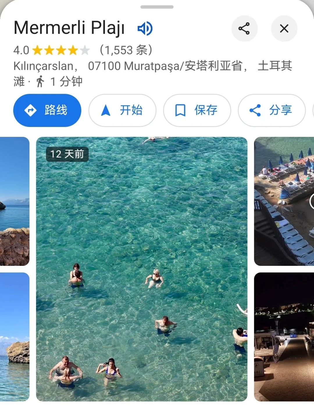 导航Mermerli Plaji(最后一张图), 位于安塔利亚的老城区中心,入口处是一家餐厅Mermerli Restaurant。