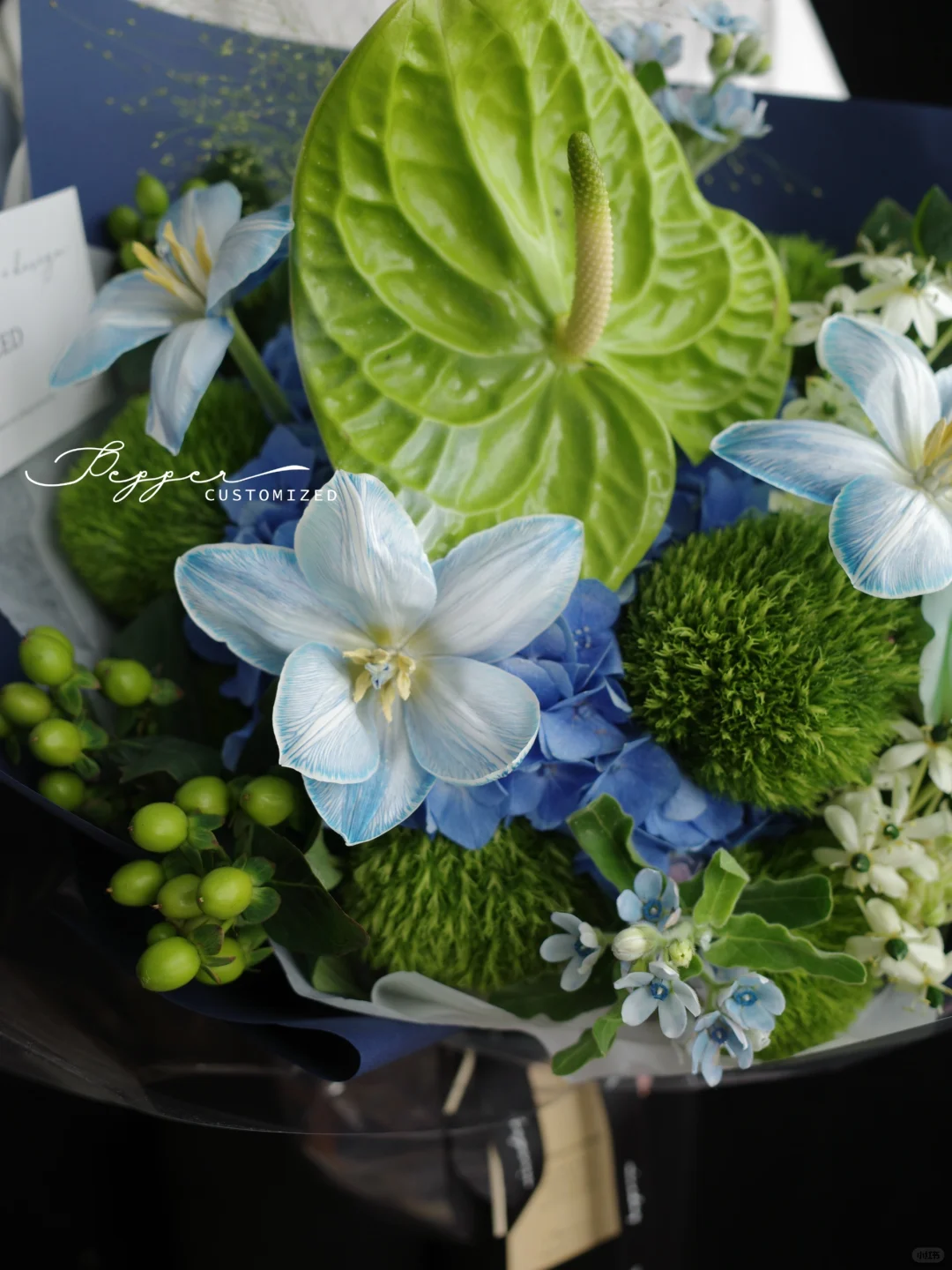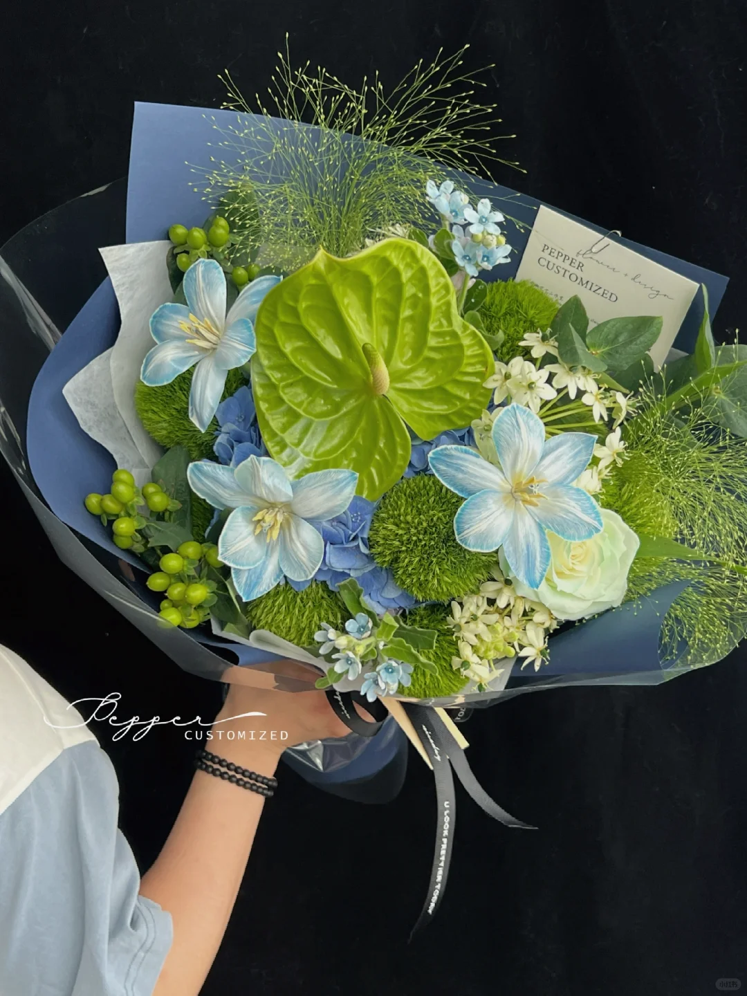加了一张相特写~ 最近的南京属实太热啦 出门就要化了 七夕送男友花束 小众花束 蓝绿色系花束 纪念日礼物花束 送女朋友礼物花束 领证手捧花